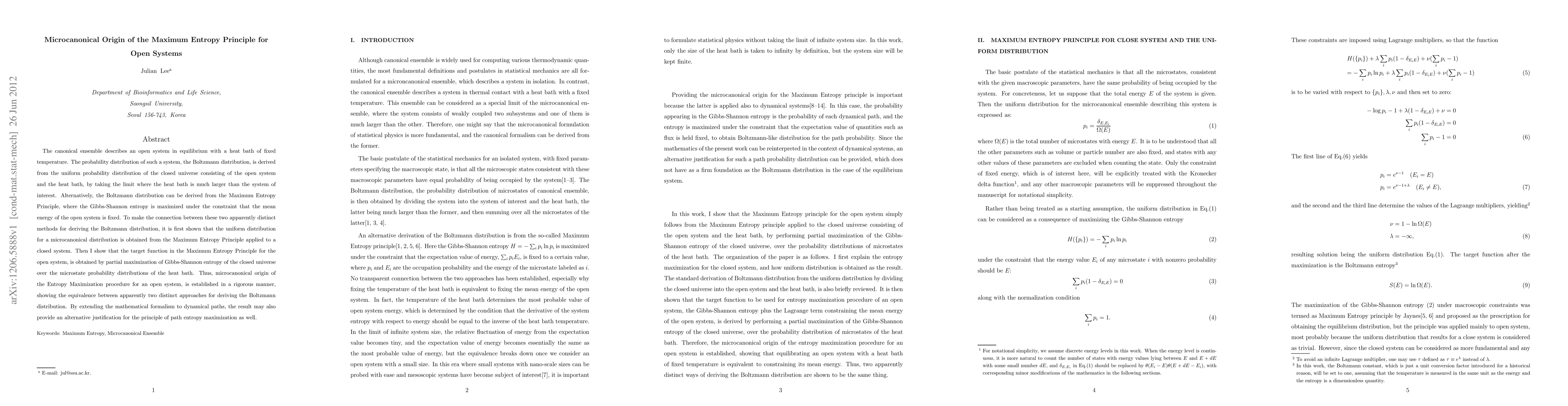 This paper establishes the microcanonical origin of the Maximum Entropy Principle for open systems, showing that the Boltzmann distribution can be derived from both the uniform distribution of a closed system and the entropy maximization under energy constraints. It bridges the gap between these two derivation methods by demonstrating their equivalence through rigorous mathematical formalism.