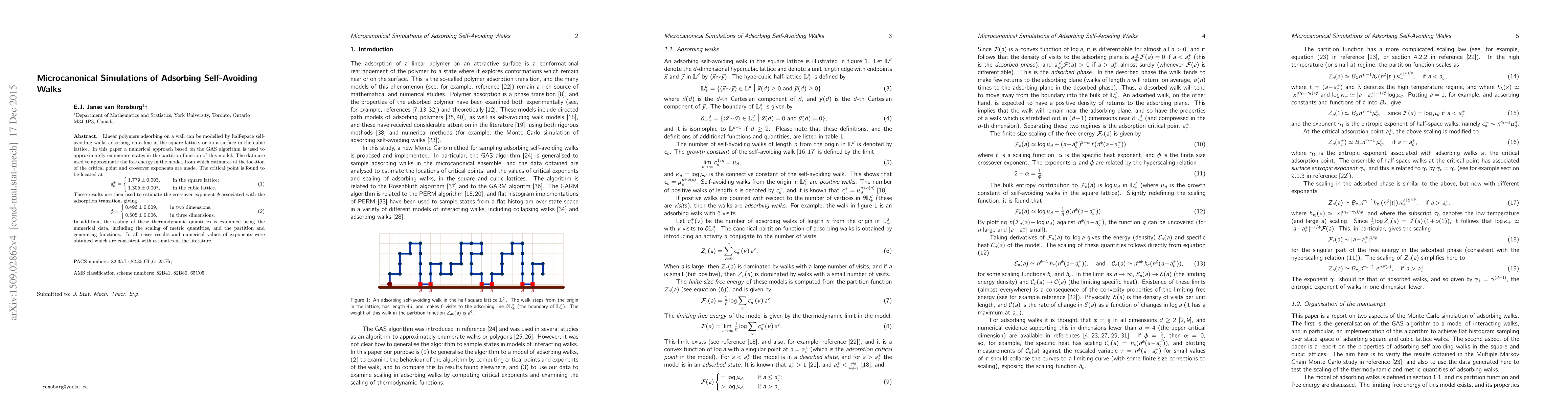 Researchers used numerical simulations to study adsorbing self-avoiding walks on different lattices, finding the critical point and crossover exponent for adsorption transitions in two and three dimensions.