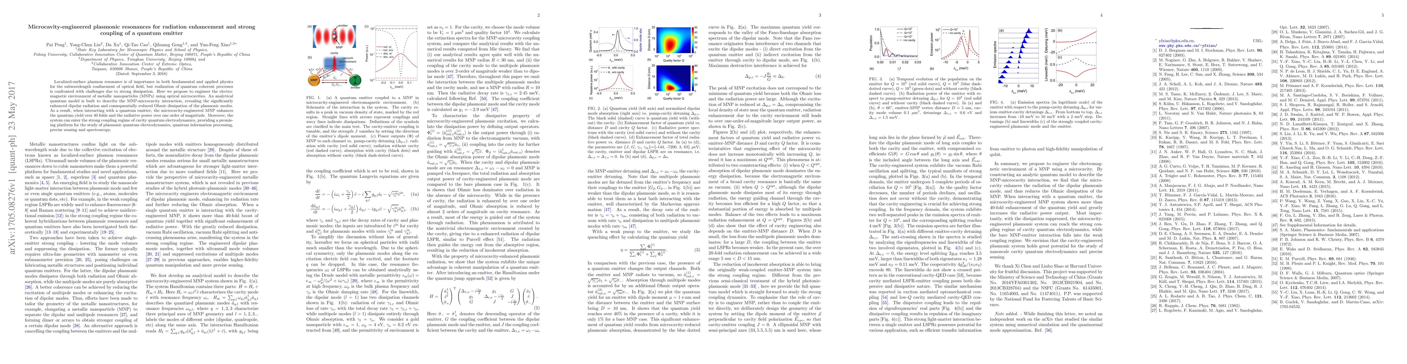 This paper proposes using optical microcavities to engineer the electromagnetic environment of metallic nanoparticles, significantly enhancing their plasmonic resonances and reducing dissipation. The engineered system boosts the quantum emitter's yield and radiative power, enabling strong coupling for applications in quantum electrodynamics, information processing, and sensing.