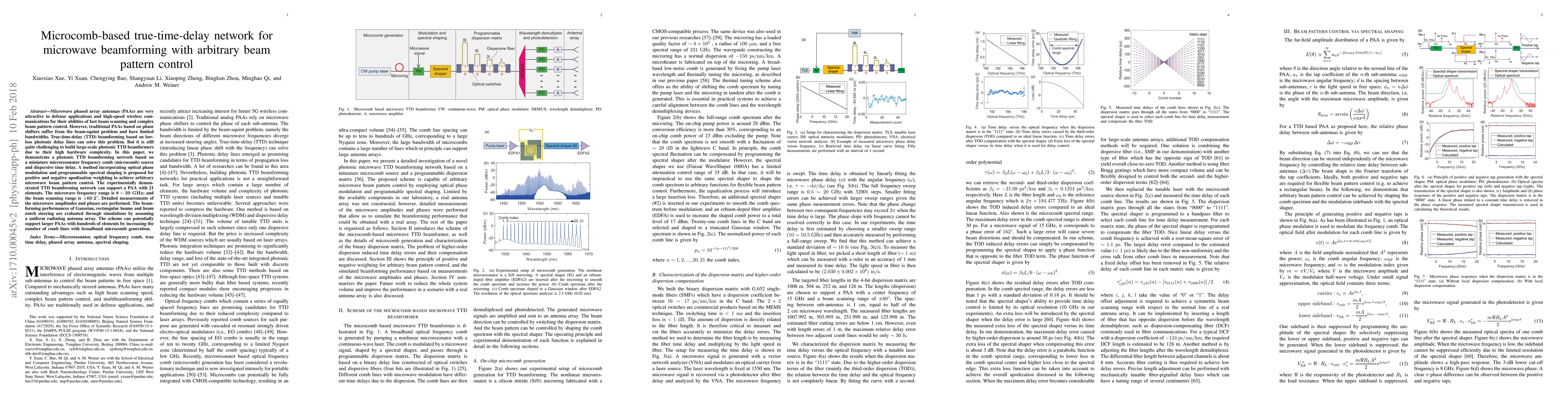 This paper presents a photonic true-time-delay (TTD) beamforming network using a microresonator frequency comb for microwave phased array antennas, enabling arbitrary beam pattern control with reduced hardware complexity. The demonstrated network supports a 21-element PAA over 8-20 GHz, achieving beam scanning up to ±60.2°.