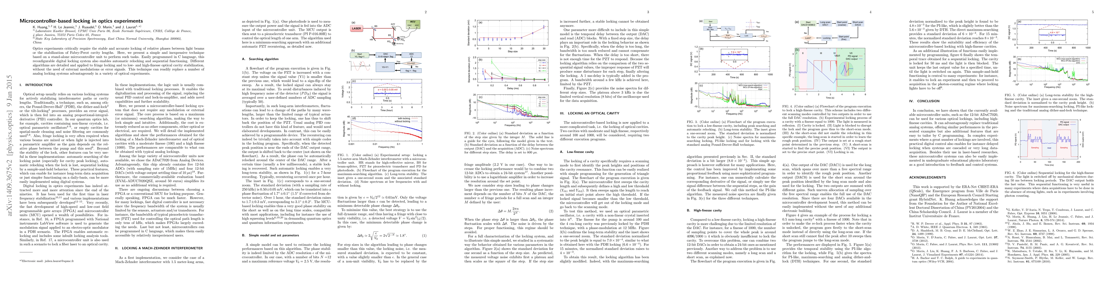 Optics experiments critically require the stable and accurate locking of relative phases between light beams or the stabilization of Fabry-Perot cavity lengths. Here, we present a simple and inexpensive technique based on a stand-alone microcontroller unit to perform such tasks. Easily programmed in C language, this reconfigurable digital locking system also enables automatic relocking and sequential functioning. Different algorithms are detailed and applied to fringe locking and to low- and high-finesse optical cavity stabilization, without the need of external modulations or error signals. This technique can readily replace a number of analog locking systems advantageously in a variety of optical experiments.