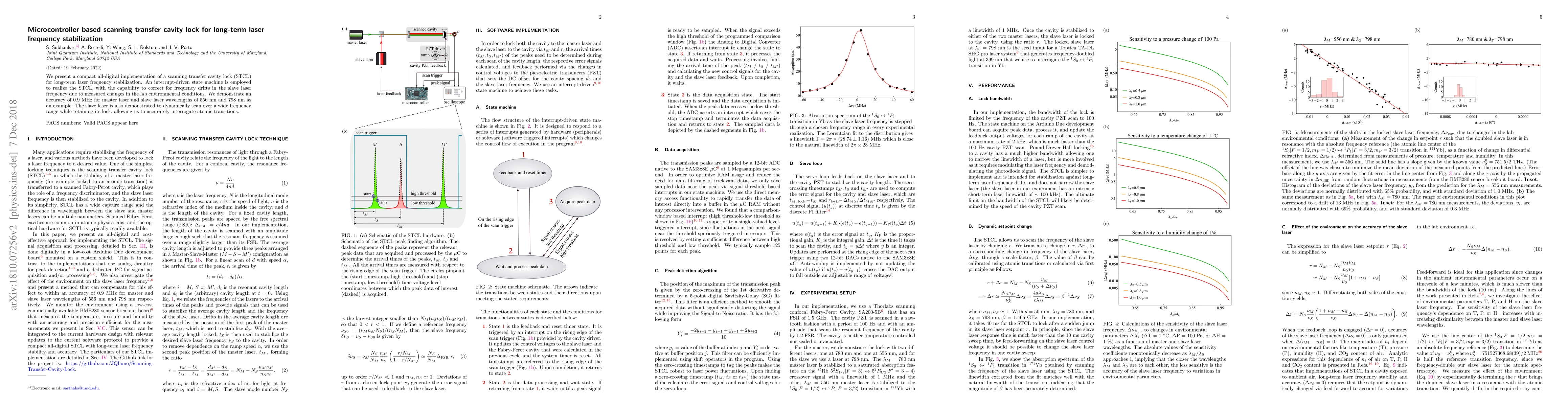 This paper details a compact digital scanning transfer cavity lock (STCL) for laser frequency stabilization using a microcontroller, achieving an accuracy of 0.9 MHz. The system dynamically corrects for environmental frequency drifts and maintains lock over a wide frequency range for atomic transition interrogation.