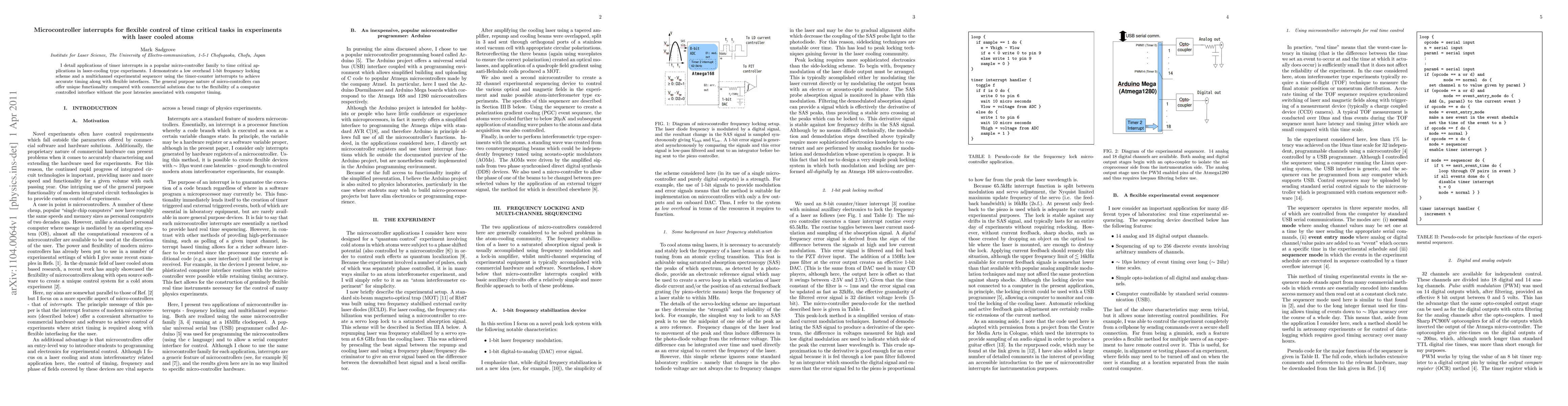 I detail applications of timer interrupts in a popular micro-controller family to time critical applications in laser-cooling type experiments. I demonstrate a low overhead 1-bit frequency locking scheme and a multichannel experimental sequencer using the timer-counter intterrupts to achieve accurate timing along with flexible interfaces. The general purpose nature of micro-controllers can offer unique functionality compared with commercial solutions due to the flexibility of a computer controlled interface without the poor latencies associated with computer timing.