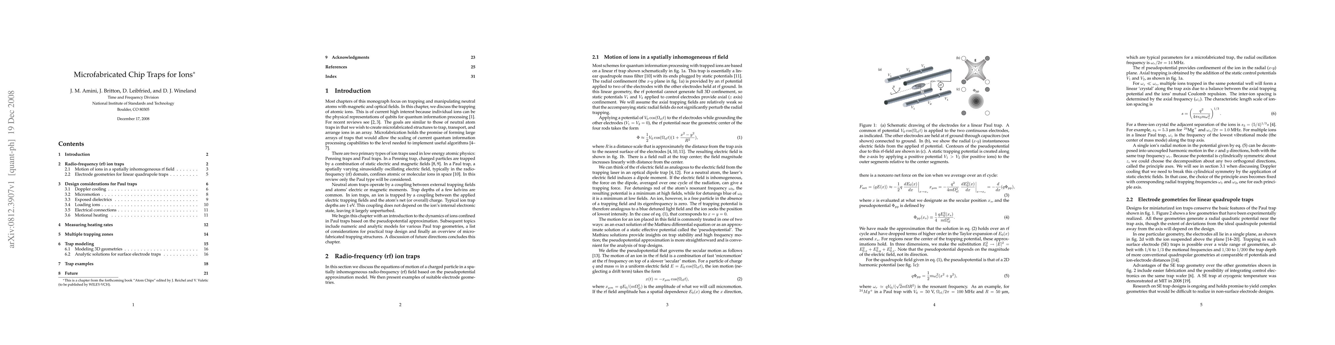 Summary: This paper introduces microfabricated ion traps, focusing on Paul traps and their geometries, along with design considerations, and provides a review of existing microfabrication technologies used for ion trapping.