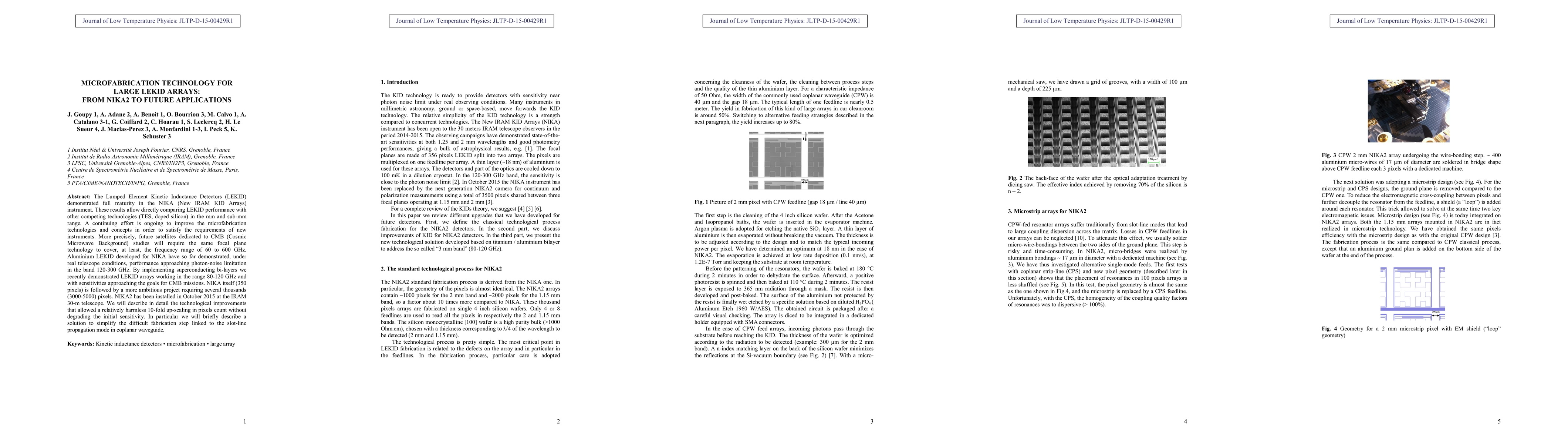 The Lumped Element Kinetic Inductance Detectors (LEKID)demonstrated full maturity in the NIKA (New IRAM KID Arrays)instrument. These results allow directly comparing LEKID performance with other competing technologies (TES, doped silicon) in the mm and sub-mm range. A continuing effort is ongoing to improve the microfabrication technologies and concepts in order to satisfy the requirements of new instruments. More precisely, future satellites dedicated to CMB (Cosmic Microwave Background) studies will require the same focal plane technology to cover, at least, the frequency range of 60 to 600 GHz. Aluminium LEKID developed for NIKA have so far demonstrated, under real telescope conditions, performance approaching photon-noise limitation in the band 120-300 GHz. By implementing superconducting bi-layers we recently demonstrated LEKID arrays working in the range 80-120 GHz and with sensitivities approaching the goals for CMB missions. NIKA itself (350 pixels) is followed by a more ambitious project requiring several thousands (3000-5000) pixels. NIKA2 has been installed in October 2015 at the IRAM 30-m telescope. We will describe in detail the technological improvements that allowed a relatively harmless 10-fold up-scaling in pixels count without degrading the initial sensitivity. In particular we will briefly describe a solution to simplify the difficult fabrication step linked to the slot-line propagation mode in coplanar waveguide.