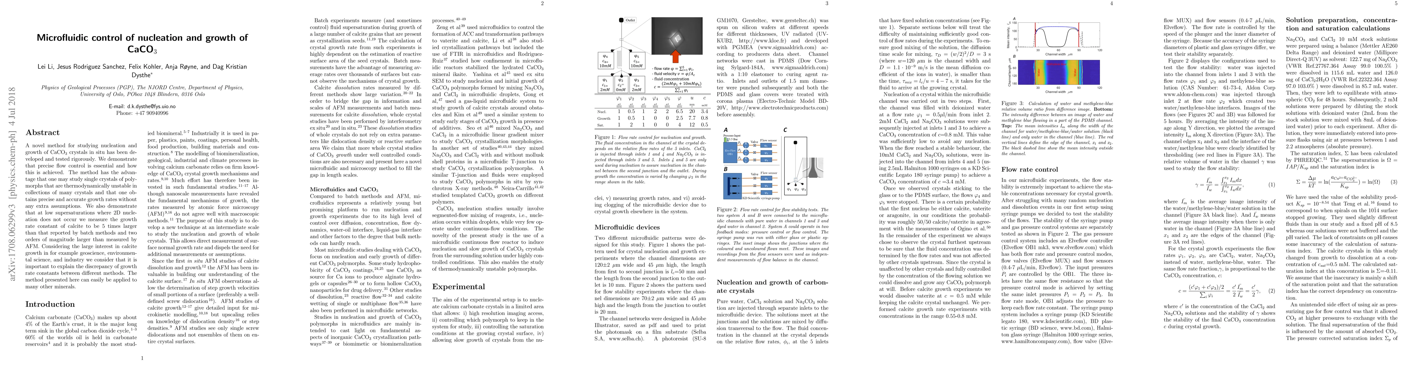 The nucleation and growth of calcite is an important research in scientific and industrial field. Both the macroscopic and microscopic observation of calcite growth have been reported. Now, with the development of microfluidic device, we could focus the nucleation and growth of one single calcite. By changing the flow rate of fluid, the concentration of fluid is controlled. We introduced a new method to study calcite growth in situ and measured the growth rate of calcite in microfluidic channel.