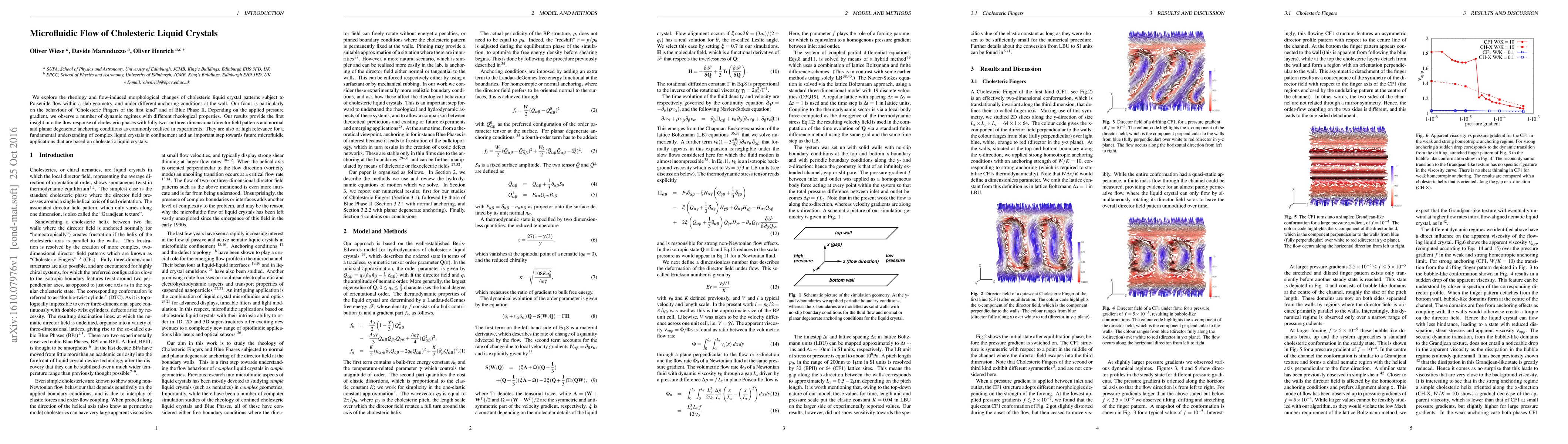 This paper investigates the rheological behavior and flow-induced morphological changes of cholesteric liquid crystals under Poiseuille flow in microfluidic channels, focusing on Cholesteric Fingers and Blue Phase II. The study reveals various dynamic regimes and provides insights into the flow response of cholesteric phases under different anchoring conditions, which is crucial for future microfluidic applications.