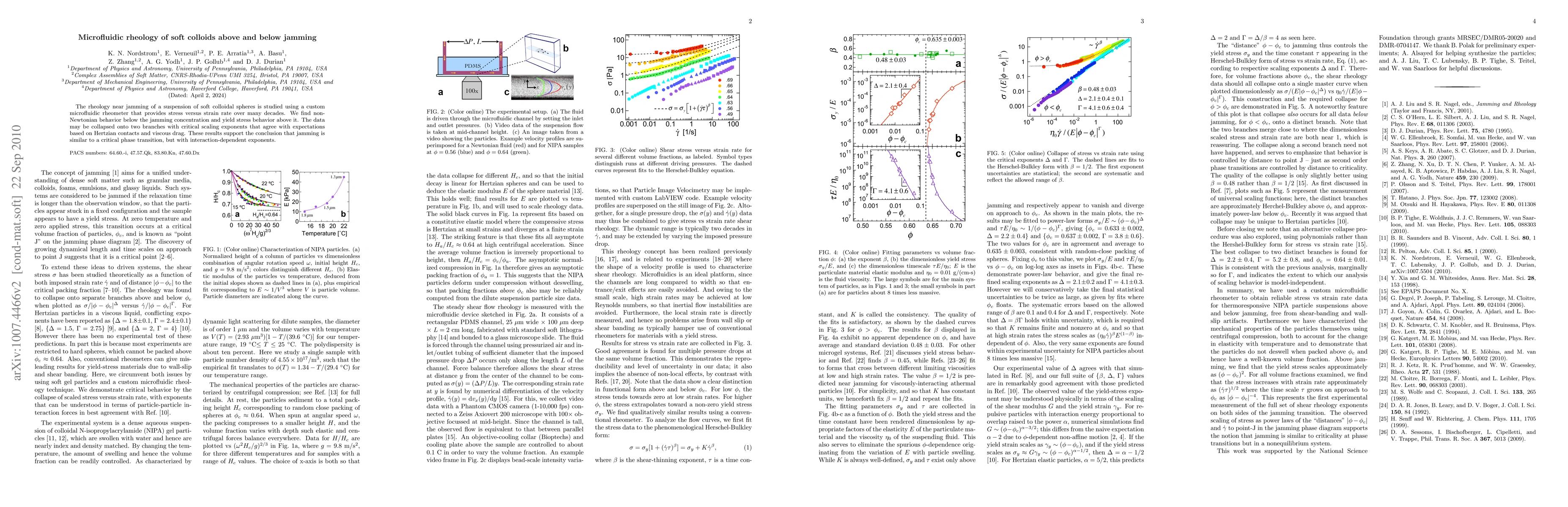 This study investigates the rheology of soft colloidal suspensions near jamming using a microfluidic rheometer, revealing non-Newtonian behavior below jamming and yield stress above it. The findings support jamming as a critical phase transition with interaction-dependent scaling exponents.