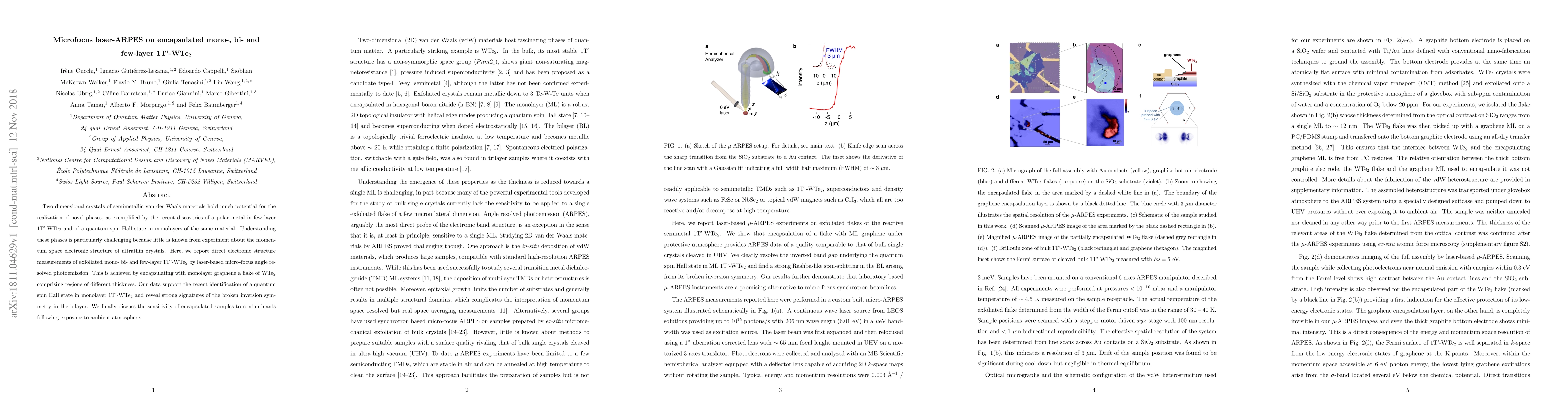 This study utilizes microfocus laser-ARPES to examine the electronic structure of encapsulated mono-, bi-, and few-layer 1T'-WTe$_2$ flakes, confirming the presence of a quantum spin Hall state in monolayers and identifying broken inversion symmetry in bilayers, while also highlighting the impact of ambient exposure on encapsulated samples.