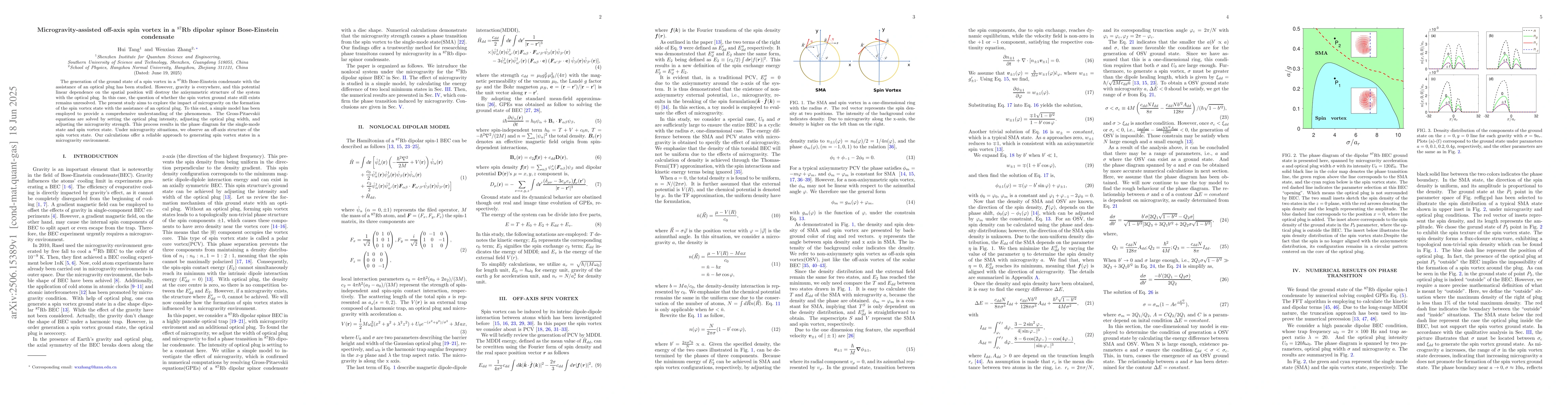 The paper presents a comprehensive numerical analysis of the Gross-Pitaevskii equations to understand the effect of microgravity on the formation of an off-axis spin vortex ground state in a dipolar Bose-Einstein condensate, using an optical plug for assistance.