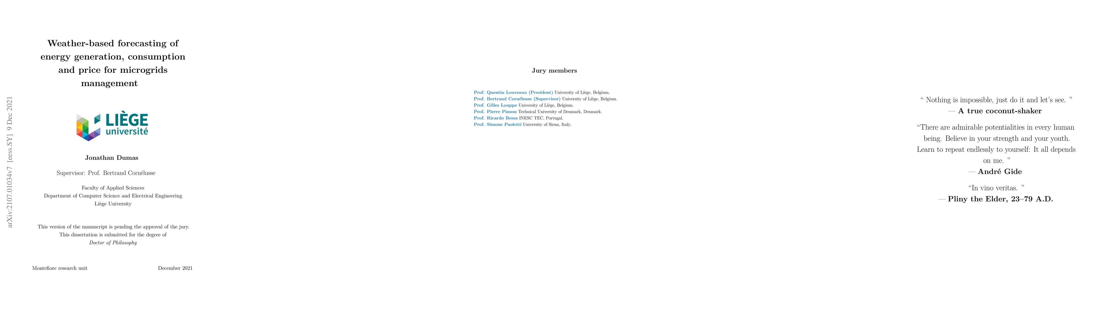 This research paper explores how to manage microgrids with weather-based forecasts of renewable energy generation, consumption, and prices in a carbon-free society, aiming to improve decision-making with uncertainty.