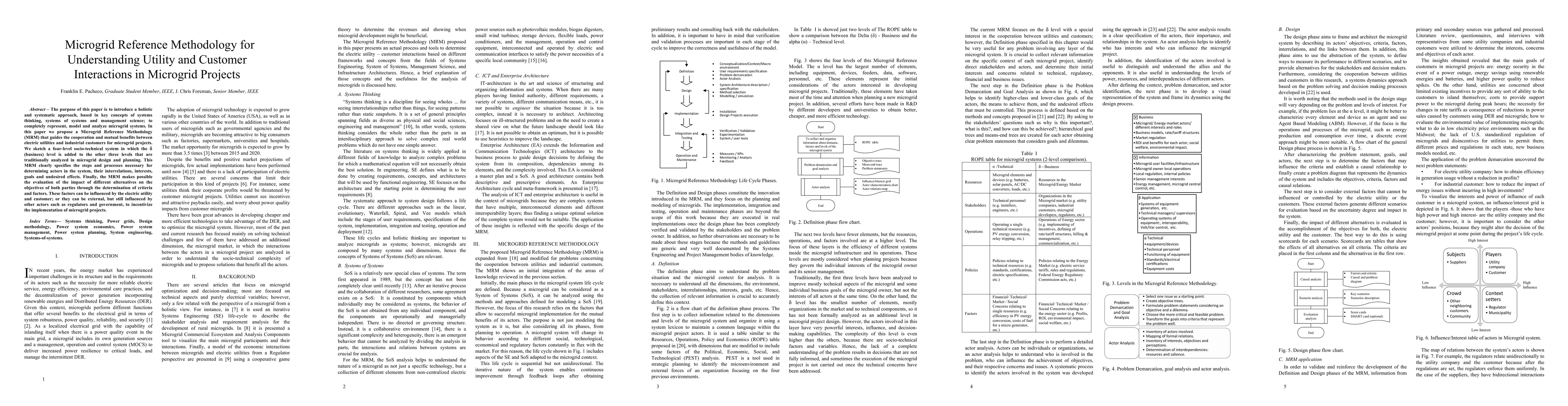 The purpose of this paper is to introduce a holistic and systematic approach, based in key concepts of systems thinking, systems of systems and management science; to completely represent, model and analyze microgrid systems. In this paper we propose a Microgrid Reference Methodology (MRM) that guides the cooperation and mutual benefits between electric utilities and industrial customers for microgrid projects. We sketch a four-level socio-technical system in which the {\delta} (business) level is added to the other three levels that are traditionally analyzed in microgrid design and planning. This MRM clearly specifies the steps and processes necessary for determining actors in the system, their interrelations, interests, goals and undesired effects. Finally, the MRM makes possible the evaluation of the impact of different alternatives on the objectives of both parties through the determination of criteria and factors. These factors can be influenced by the electric utility and customer; or they can be external, but still influenced by other actors such as regulators and government, to incentivize the implementation of microgrid projects.