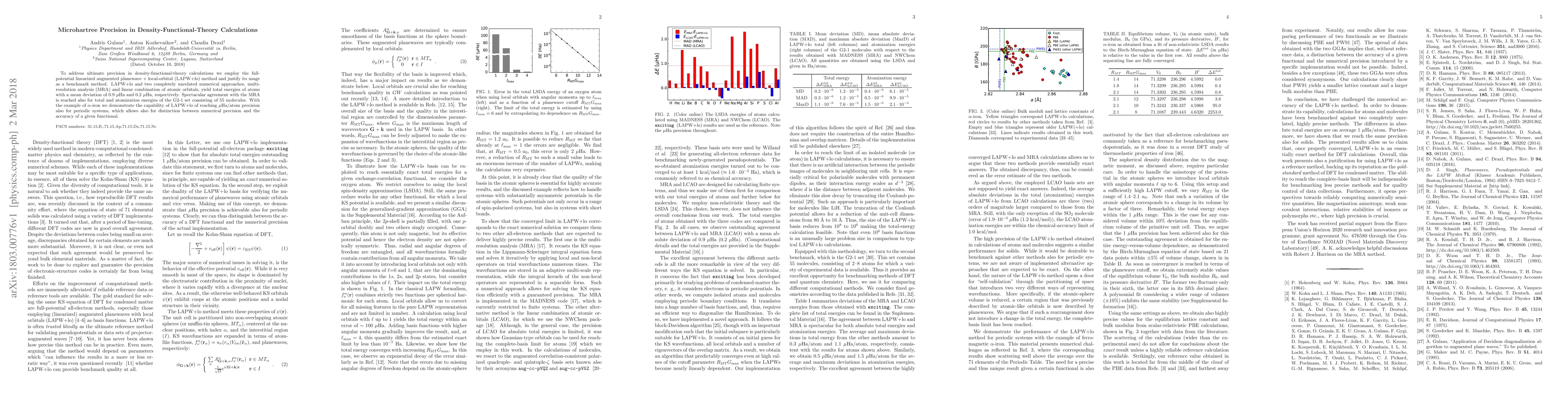This paper benchmarks the LAPW+lo method for achieving microhartree precision in density-functional-theory calculations, demonstrating its effectiveness through comparisons with MRA and linear combination of atomic orbitals, showing mean deviations of 0.9~μHa and 0.2~μHa respectively, and achieving high accuracy for both atomic and molecular systems.