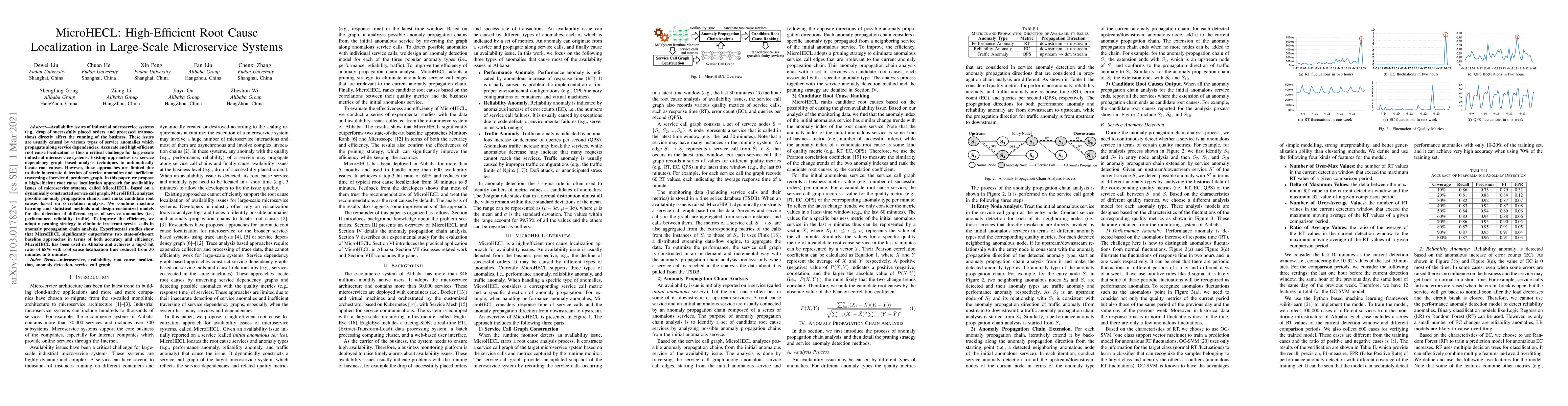 MicroHECL proposes a high-efficient root cause localization method for microservice systems, combining machine learning and statistical models to detect various service anomalies and employing a pruning strategy to enhance efficiency. Experimental results show significant improvements over existing methods, reducing localization time from 30 minutes to 5 minutes.