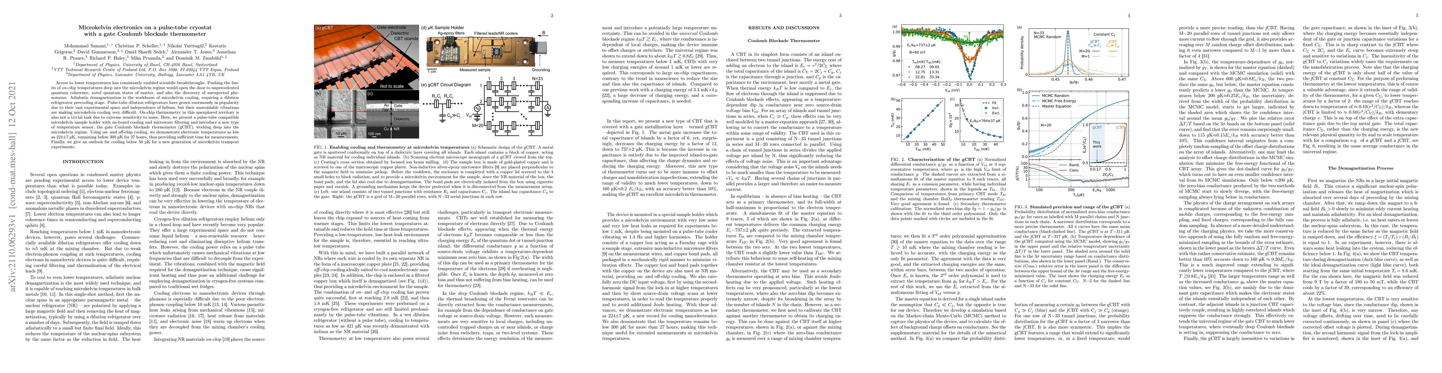 This research develops a pulse-tube cryostat with a gate Coulomb blockade thermometer (gCBT) to achieve microkelvin temperatures, achieving 224±7μK and maintaining below 300μK for 27 hours. The new thermometer and filtering methods promise advancements in quantum coherence and novel quantum states of matter studies.