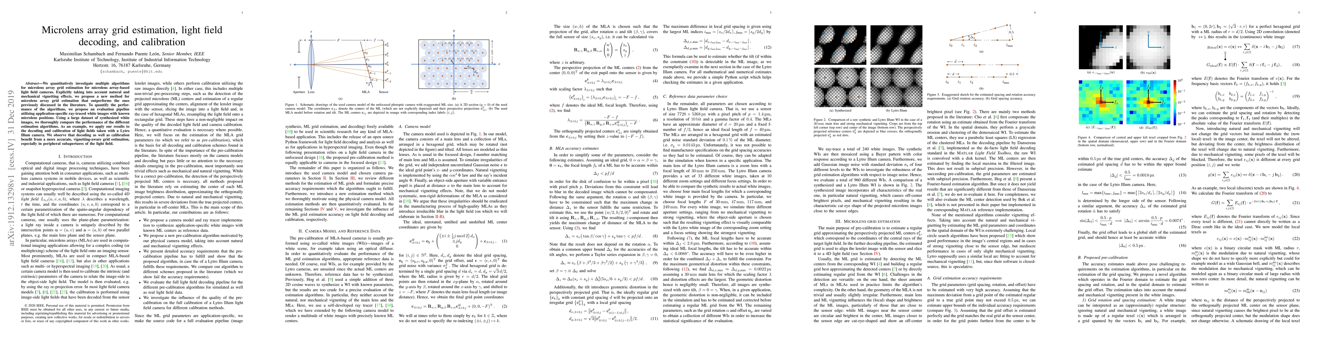 This paper proposes a new method for estimating microlens array grid in light field cameras, considering vignetting effects, and outperforms existing algorithms. It evaluates the performance using synthesized white images and demonstrates improved decoding and calibration of light fields, particularly in peripheral subapertures.