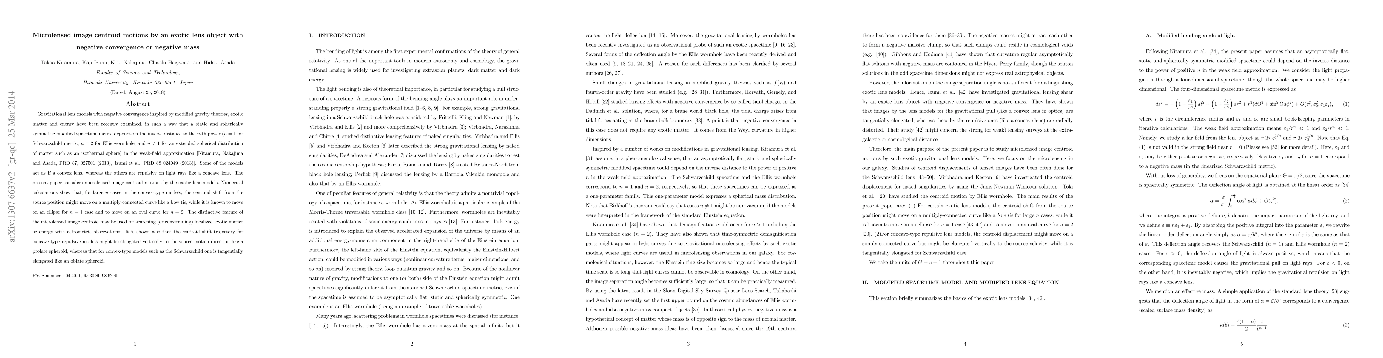 Gravitational lens models with negative convergence inspired by modified gravity theories, exotic matter and energy have been recently examined, in such a way that a static and spherically symmetric modified spacetime metric depends on the inverse distance to the $n$-th power ($n=1$ for Schwarzschild metric, $n=2$ for Ellis wormhole, and $n \neq 1$ for an extended spherical distribution of matter such as an isothermal sphere) in the weak-field approximation [Kitamura, Nakajima and Asada, PRD 87, 027501 (2013), Izumi et al. PRD 88 024049 (2013)]. Some of the models act as if a convex lens, whereas the others are repulsive on light rays like a concave lens. The present paper considers microlensed image centroid motions by the exotic lens models. Numerical calculations show that, for large $n$ cases in the convex-type models, the centroid shift from the source position might move on a multiply-connected curve like a bow tie, while it is known to move on an ellipse for $n=1$ case and to move on an oval curve for $n=2$. The distinctive feature of the microlensed image centroid may be used for searching (or constraining) localized exotic matter or energy with astrometric observations. It is shown also that the centroid shift trajectory for concave-type repulsive models might be elongated vertically to the source motion direction like a prolate spheroid, whereas that for convex-type models such as the Schwarzschild one is tangentially elongated like an oblate spheroid.