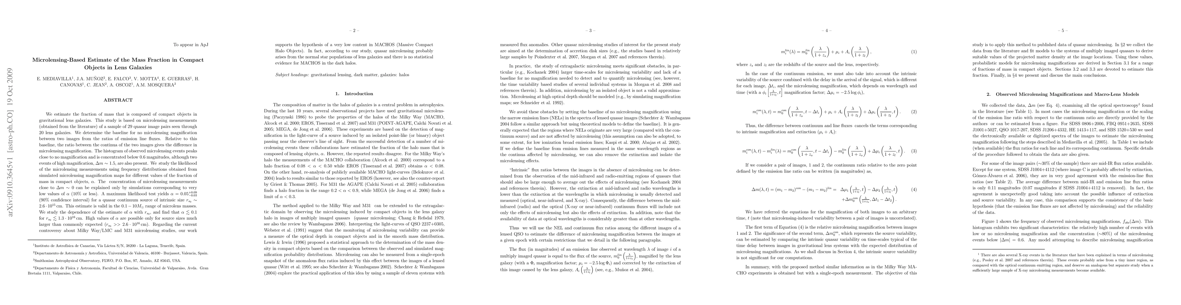 This study estimates the mass fraction of compact objects in gravitational lens galaxies using microlensing measurements from 29 quasar image pairs. The analysis finds that the microlensing data supports a very low mass fraction (0.05 with a 90% confidence interval) of compact objects, aligning with the hypothesis of minimal Massive Compact Halo Objects (MACHOS).