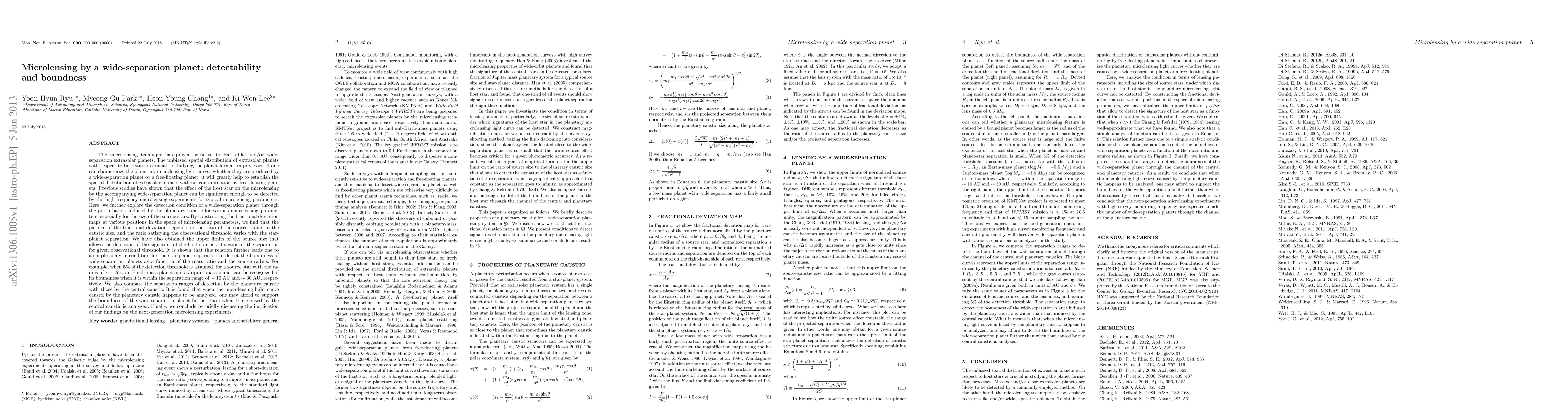 We explore the detection condition of a wide-separation planet through the perturbation induced by the planetary caustic for various microlensing parameters, especially for the size of the source stars. By constructing the fractional deviation maps at various positions in the space of microlensing parameters, we find that the pattern of the fractional deviation depends on the ratio of the source radius to the caustic size, and the ratio satisfying the observational threshold varies with the star-planet separation. We have also obtained the upper limits of the source size that allows the detection of the signature of the host star as a function of the separation for given observational threshold. It is shown that this relation further leads one to a simple analytic condition for the star-planet separation to detect the boundness of wide-separation planets as a function of the mass ratio and the source radius. For example, when 5% of the detection threshold is assumed, for a source star with the radius of ~1 R_sun, an Earth-mass planet and a Jupiter-mass planet can be recognized of its boundness when it is within the separation range of ~10 AU and ~30 AU, respectively. We also compare the separation ranges of detection by the planetary caustic with those by the central caustic. It is found that when the microlensing light curve caused by the planetary caustic happens to be analyzed, one may afford to support the boundness of the wide-separation planet farther than when that caused by the central caustic is analyzed. Finally, we conclude by briefly discussing the implication of our findings on the next-generation microlensing experiments.