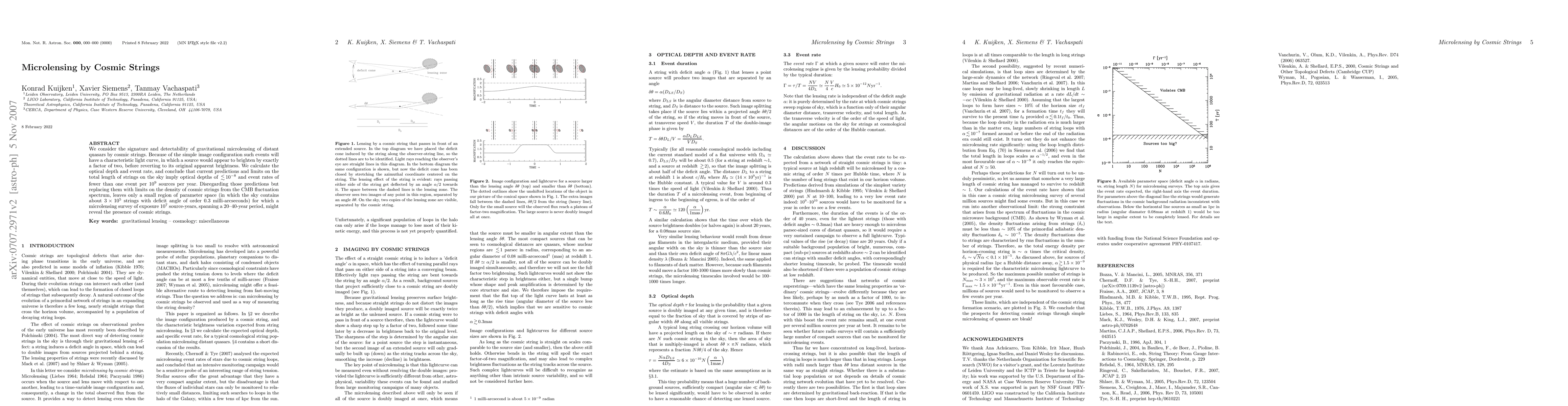 Researchers found that cosmic strings can create a characteristic light curve in distant quasars through gravitational microlensing, with estimated optical depths and event rates suggesting it may be detectable with future surveys.