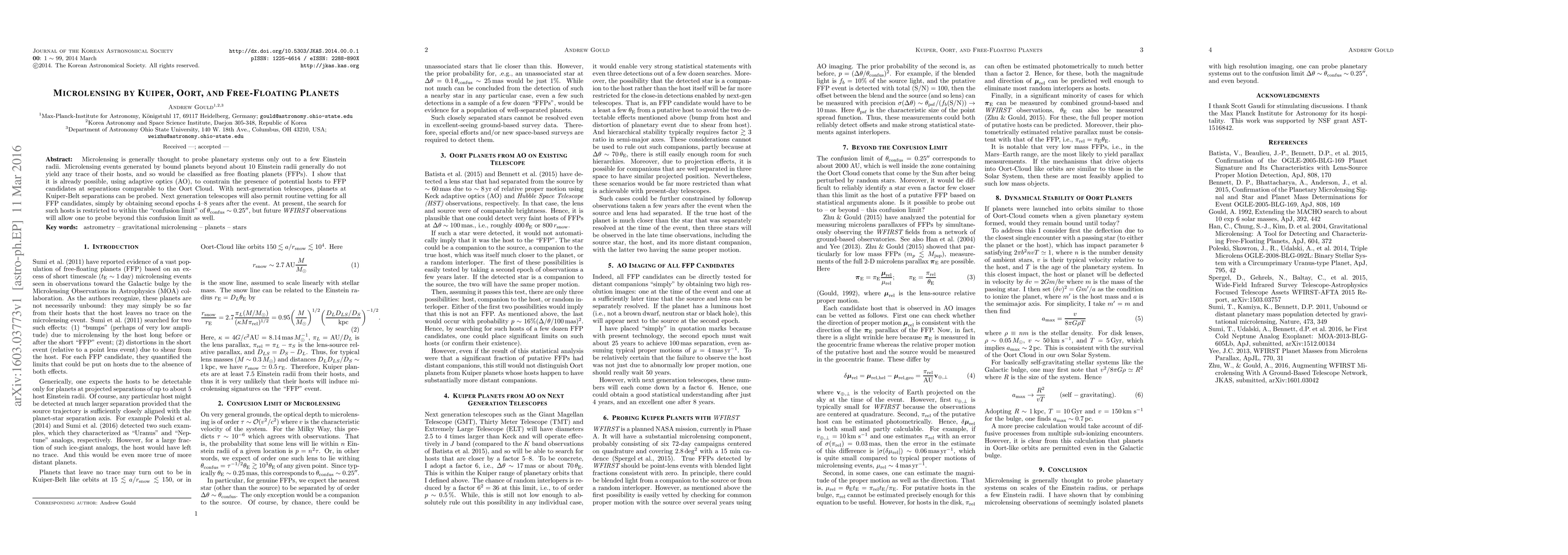 Researchers can now detect distant planetary hosts using adaptive optics, expanding the search for free-floating planets beyond 10 Einstein radii. Next-generation telescopes will enable routine detection of FFP candidates at Kuiper-Belt separations.
