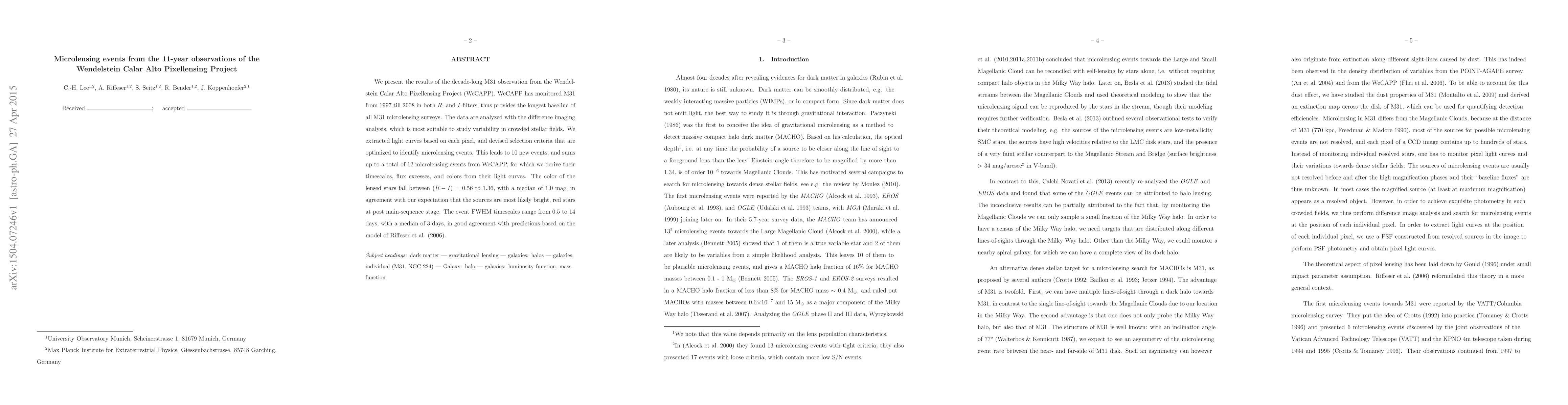 Researchers from the Wendelstein Calar Alto Pixellensing Project discovered 12 microlensing events in the Andromeda galaxy M31, providing new insights into these rare astronomical phenomena.