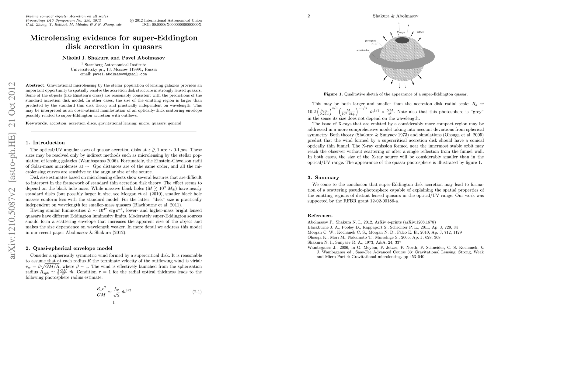 This paper uses gravitational microlensing to reveal that some quasars exhibit larger-than-expected accretion disk sizes, suggesting the presence of an optically-thick scattering envelope linked to super-Eddington accretion and outflows. This challenges the standard thin disk model.
