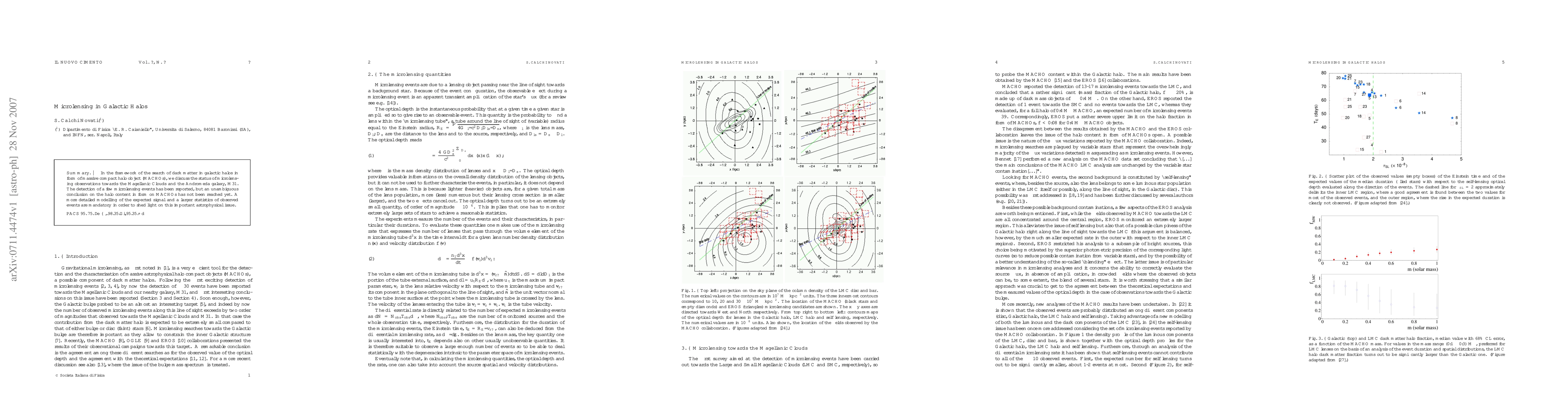In the framework of the search of dark matter in galactic halos in form of massive compact halo object (MACHOs), we discuss the status of microlensing observations towards the Magellanic Clouds and the Andromeda galaxy, M31. The detection of a few microlensing events has been reported, but an unambiguous conclusion on the halo content in form on MACHOs has not been reached yet. A more detailed modelling of the expected signal and a larger statistics of observed events are mandatory in order to shed light on this important astrophysical issue.