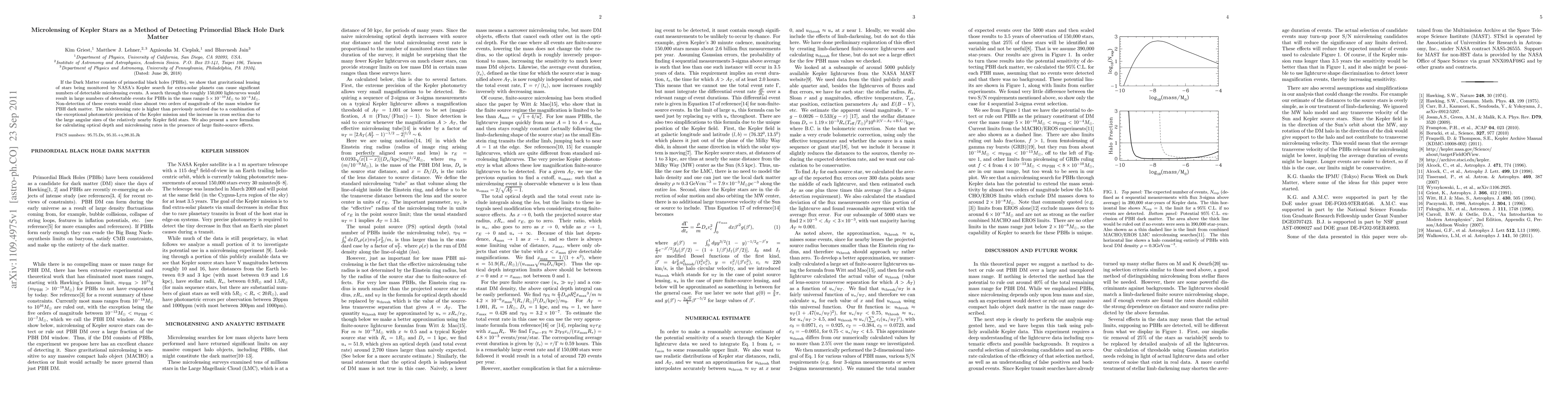 The research proposes using microlensing of Kepler stars to detect primordial black hole (PBH) dark matter. It leverages the exceptional photometric precision of the Kepler mission and the large angular sizes of nearby Kepler field stars to increase the microlensing rate.