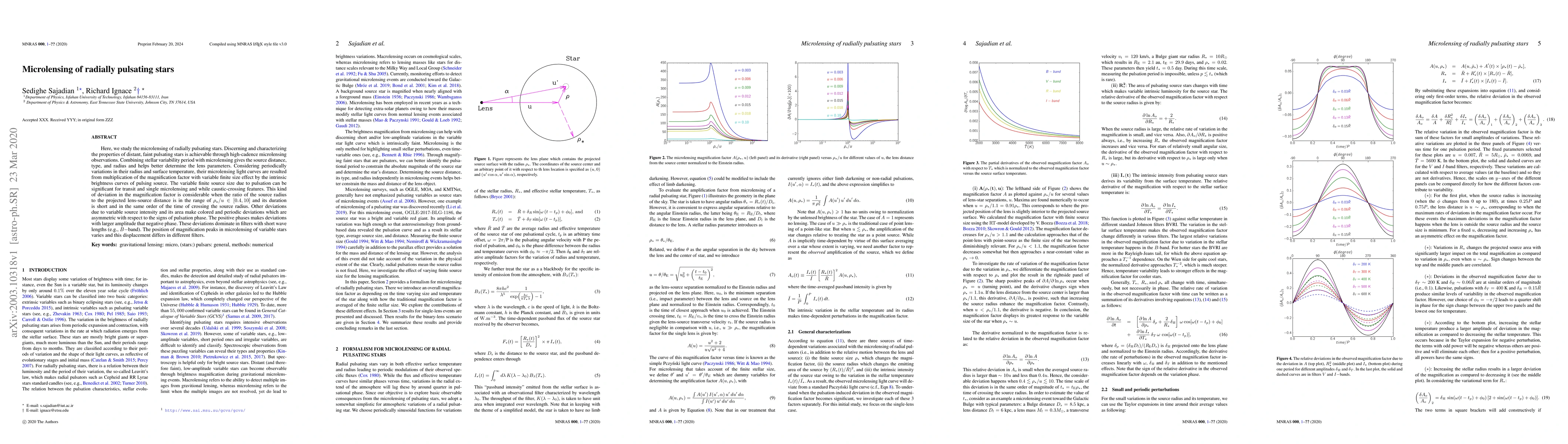 This paper investigates the microlensing of radially pulsating stars, revealing how their periodic variations affect light curves. It finds that the variable finite source size due to pulsation significantly impacts microlensing, especially in the $\rho_{\star}/u \in[0.4,10]$ range, leading to asymmetric and wavelength-dependent deviations in magnification peaks.