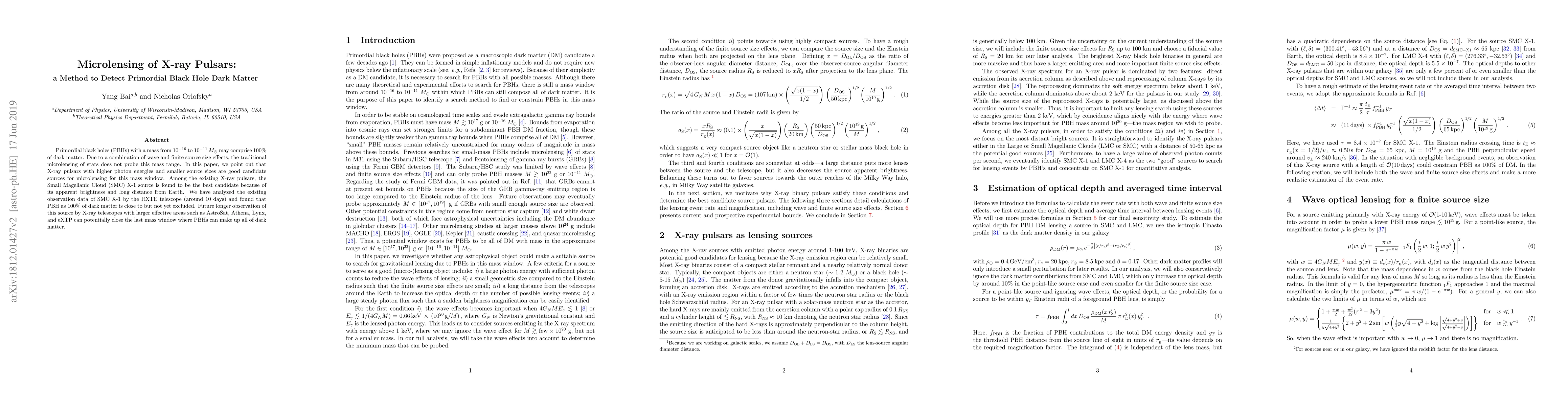 Researchers propose using X-ray pulsars like SMC X-1 to detect primordial black holes as 100% of dark matter, a hypothesis that could be tested with future longer observations.