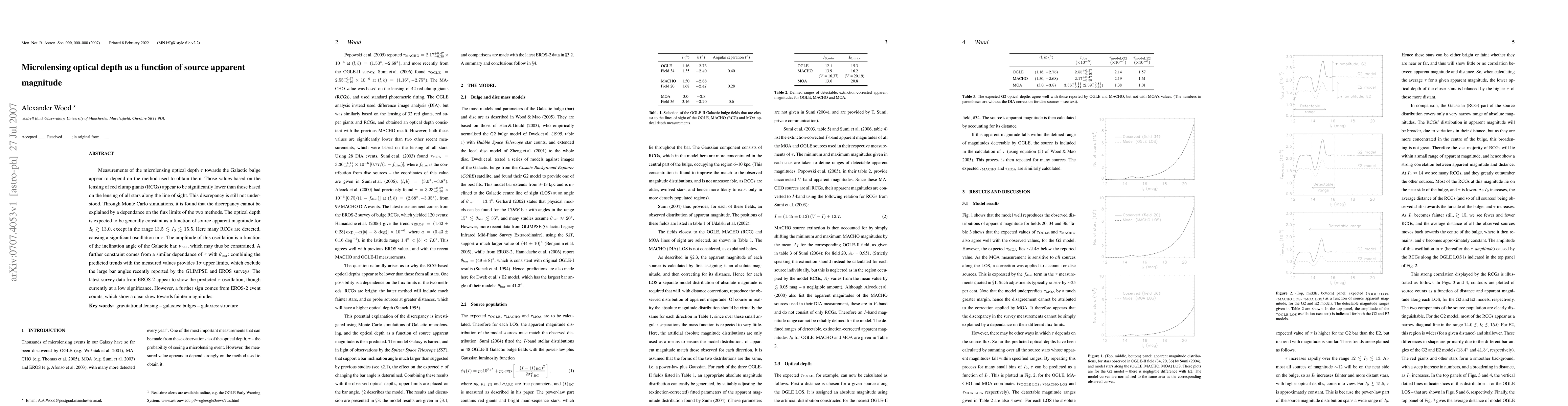 Measurements of the microlensing optical depth, tau, towards the Galactic bulge appear to depend on the method used to obtain them. Those values based on the lensing of red clump giants (RCGs) appear to be significantly lower than those based on the lensing of all stars along the line of sight. This discrepancy is still not understood. Through Monte Carlo simulations, it is found that the discrepancy cannot be explained by a dependance on the flux limits of the two methods. The optical depth is expected to be generally constant as a function of source apparent magnitude for I_0 >~ 13.0, except in the range 13.5 <~ I_0 <~ 15.5. Here many RCGs are detected, causing a significant oscillation in tau. The amplitude of this oscillation is a function of the inclination angle of the Galactic bar, theta_bar, which may thus be constrained. A further constraint comes from a similar dependance of tau with theta_bar: combining the predicted trends with the measured values provides 1-sigma upper limits, which exclude the large bar angles recently reported by the GLIMPSE and EROS surveys. The latest survey data from EROS-2 appear to show the predicted tau oscillation, though currently at a low significance. However, a further sign comes from EROS-2 event counts, which show a clear skew towards fainter magnitudes.