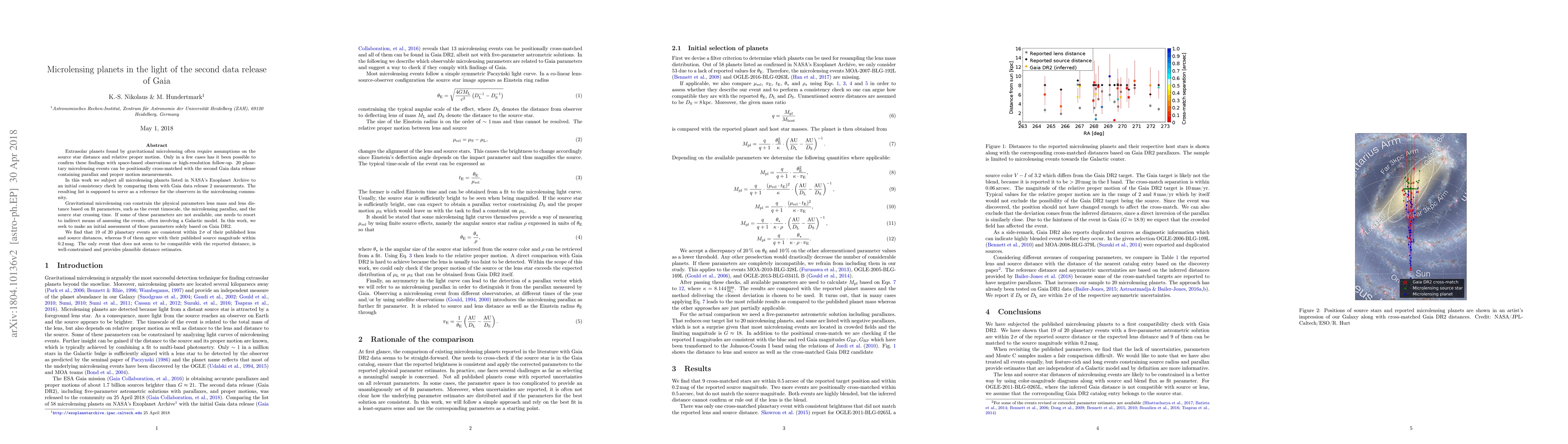 The research cross-matches 20 microlensing planets with Gaia DR2 data to assess their consistency with published lens and source distances and source magnitudes.