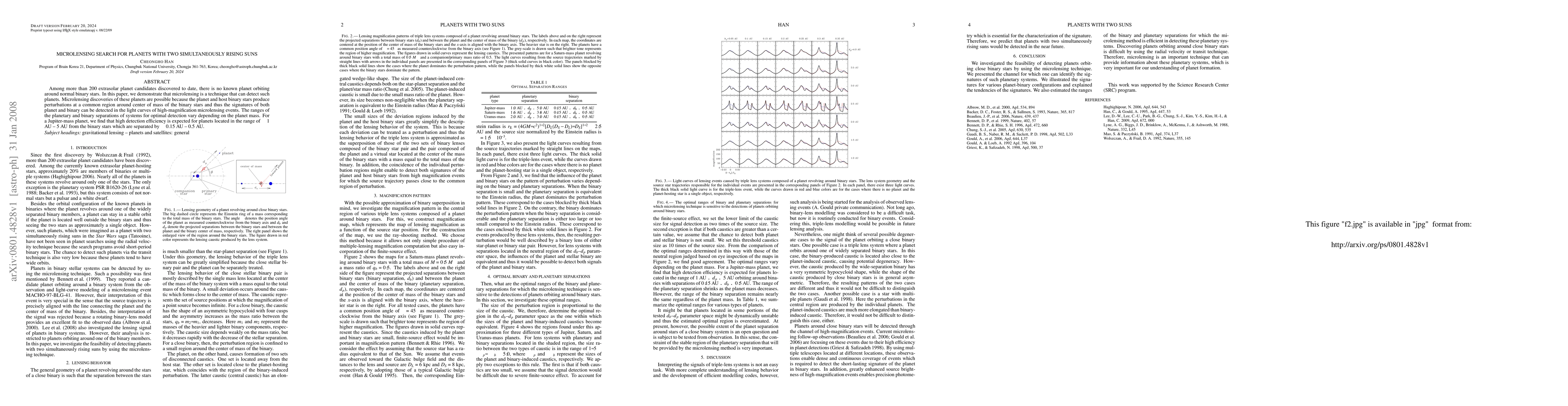 This paper explores the use of microlensing to detect planets orbiting binary star systems, revealing no known planets in such configurations to date. It demonstrates that microlensing can identify these planets by detecting perturbations in the light curves of high-magnification events, with optimal detection efficiency for Jupiter-mass planets within 1 AU to 5 AU from binary stars separated by 0.15 AU to 0.5 AU.