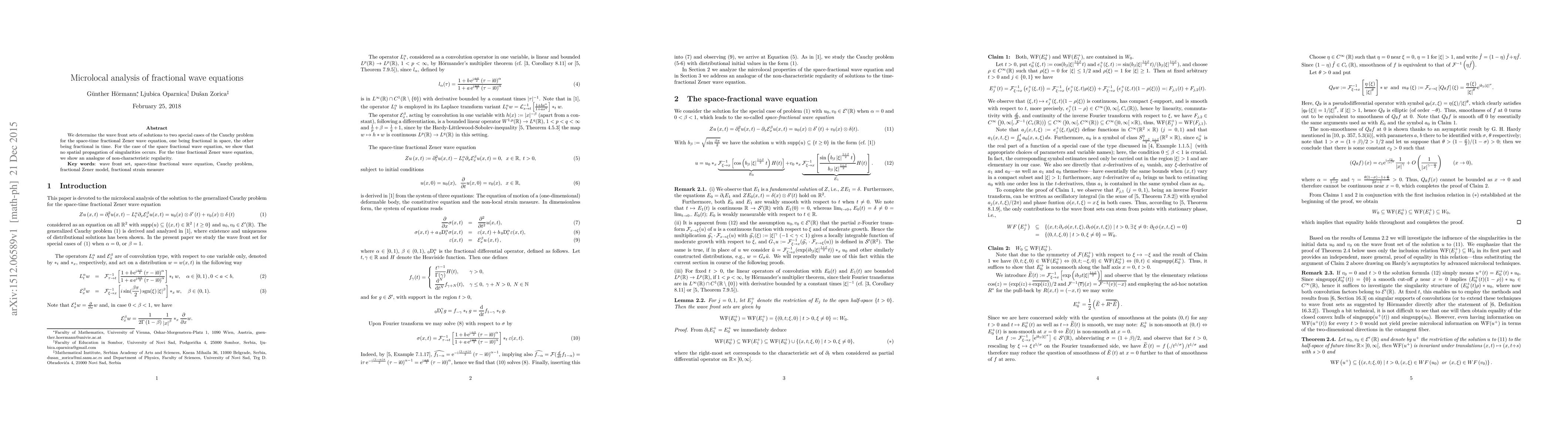 This paper investigates the wave front sets of solutions to two variants of the fractional Zener wave equation, revealing no spatial propagation of singularities for the space-fractional case and demonstrating non-characteristic regularity for the time-fractional case.