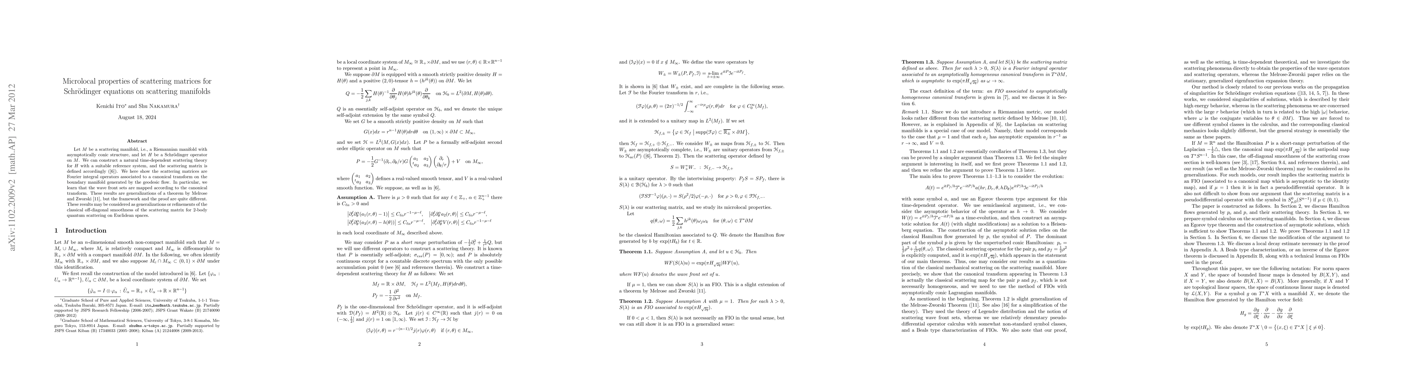 This research paper investigates how scattering matrices for Schrödinger equations on certain manifolds relate to canonical transforms and Fourier integral operators, generalizing previous theorems.