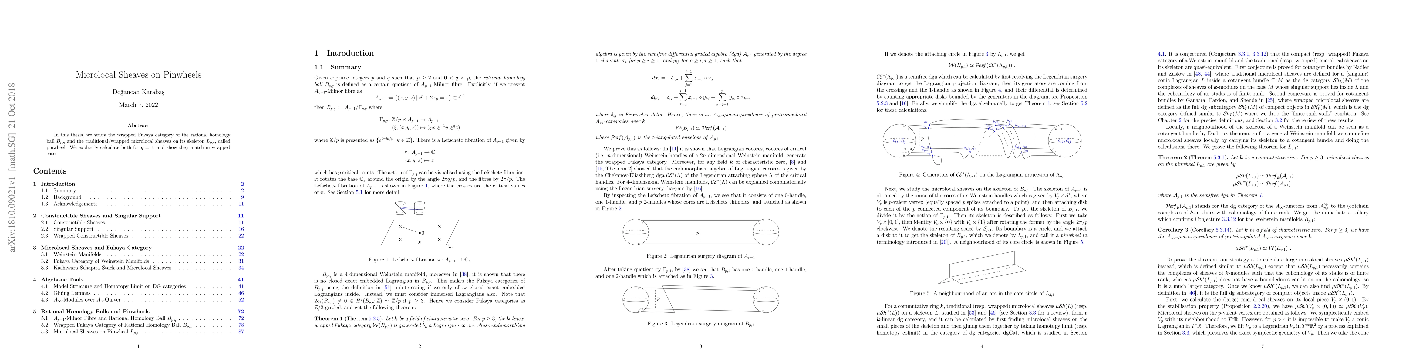 This thesis studies microlocal sheaves on a pinwheel structure in algebraic geometry, showing they match for the wrapped case when q=1.