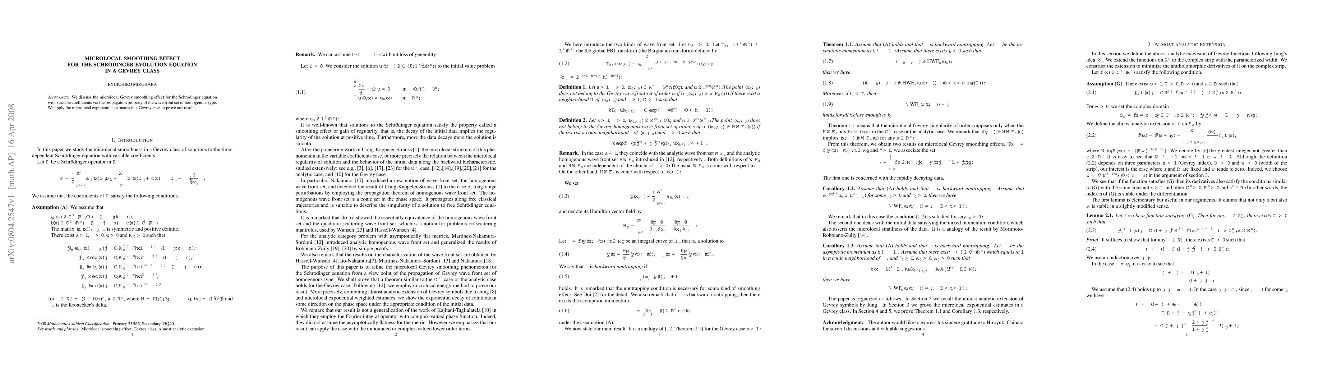 Summary: This paper investigates the microlocal Gevrey smoothing effect for the Schrödinger equation with variable coefficients, utilizing wave front set propagation properties and microlocal exponential estimates to establish the result.