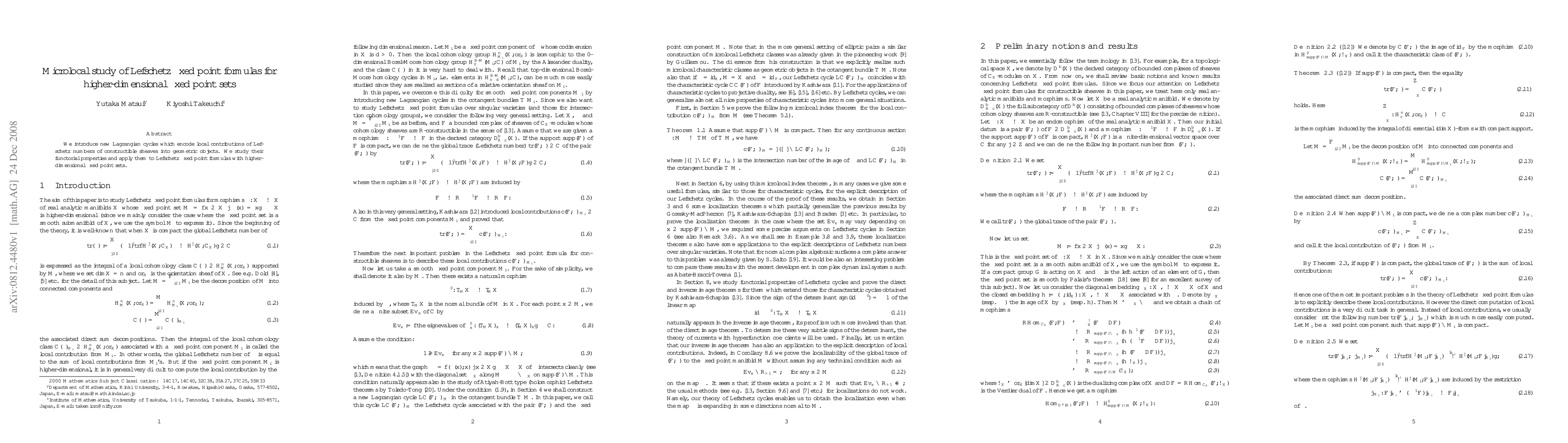 Summary: This paper introduces Lagrangian cycles to encode local contributions of Lefschetz numbers for constructible sheaves, examining their functorial properties and applying them to Lefschetz fixed point formulas involving higher-dimensional fixed point sets.