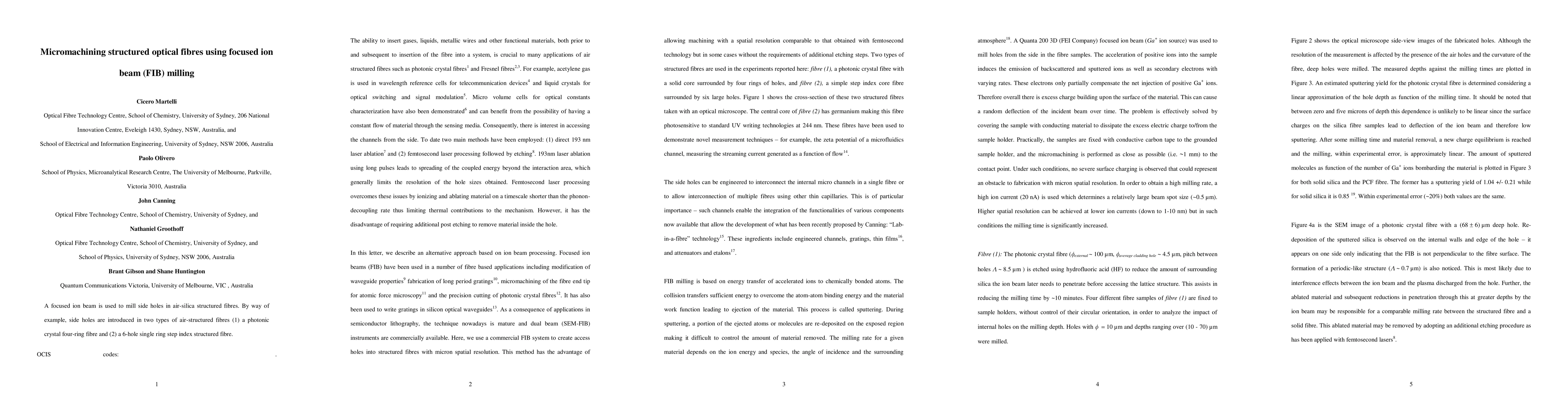 The development of a method for micromachining structured optical fibres using focused ion beam milling.