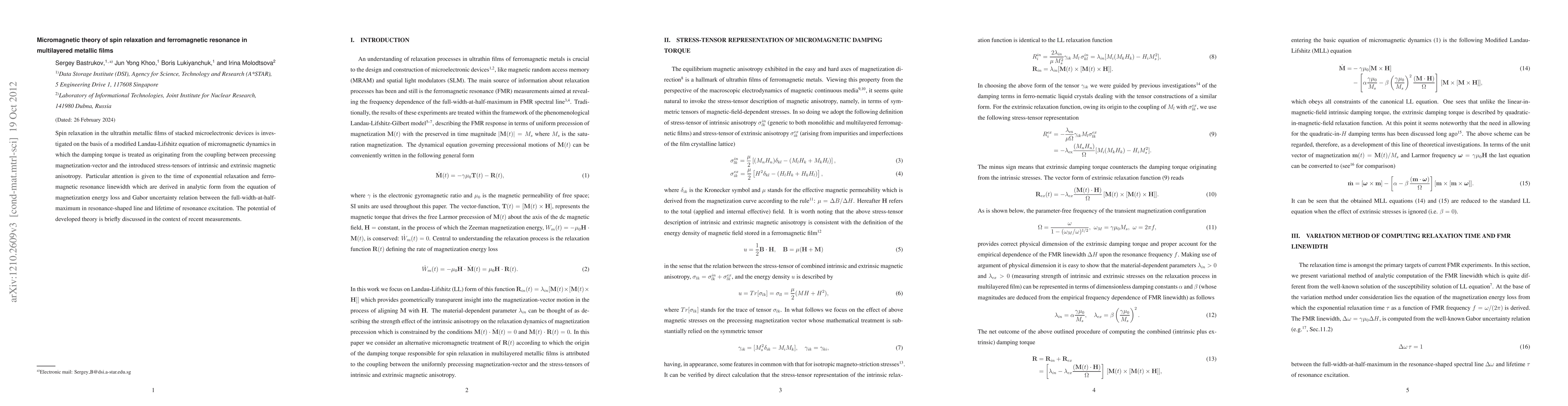 This paper develops a micromagnetic theory to investigate spin relaxation and ferromagnetic resonance in multilayered metallic films, deriving analytic expressions for relaxation time and resonance linewidth based on modified Landau-Lifshitz dynamics and uncertainty relations. The theory's potential is discussed in relation to recent experimental measurements.