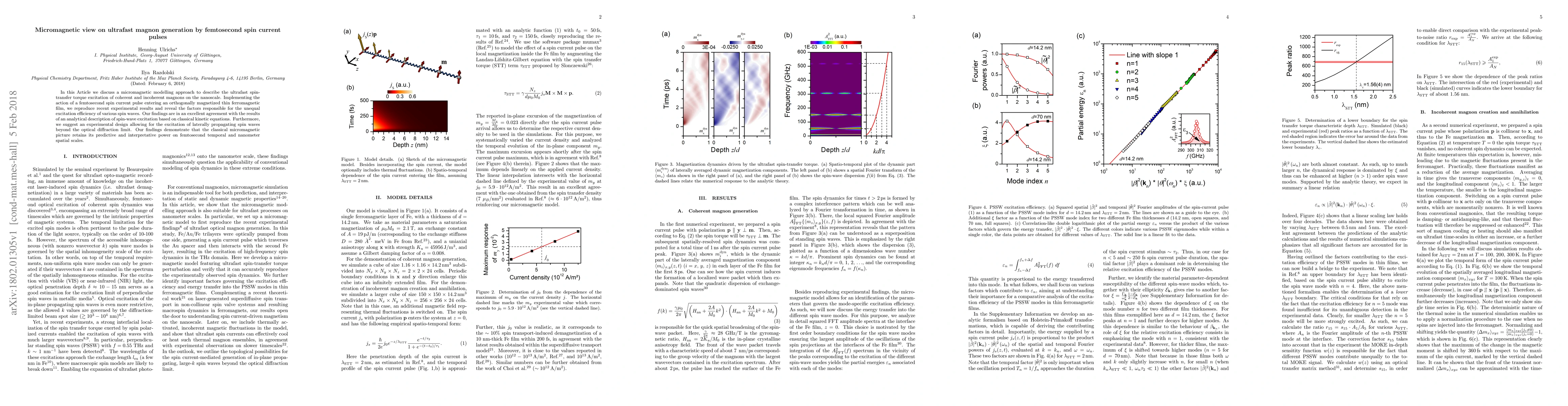 In this Article we discuss a micromagnetic modelling approach to describe the ultrafast spin-transfer torque excitation of coherent and incoherent magnons on the nanoscale. Implementing the action of a femtosecond spin current pulse entering an orthogonally magnetized thin ferromagnetic film, we reproduce recent experimental results and reveal the factors responsible for the unequal excitation efficiency of various spin waves. Our findings are in an excellent agreement with the results of an analytical description of spin-wave excitation based on classical kinetic equations. Furthermore, we suggest an experimental design allowing for the excitation of laterally propagating spin waves beyond the optical diffraction limit. Our findings demonstrate that the classical micromagnetic picture retains its predictive and interpretative power on femtosecond temporal and nanometer spatial scales.