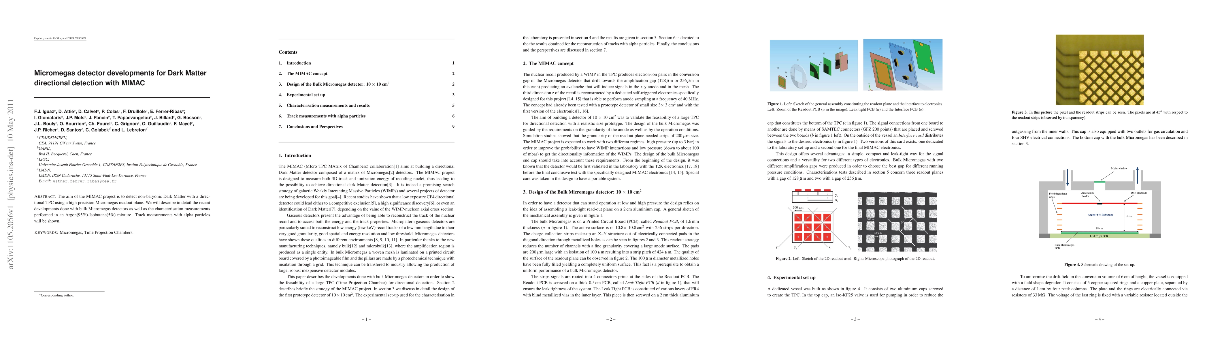 The MIMAC project aims to detect non-baryonic Dark Matter using a high-precision Micromegas detector in a directional TPC. Recent developments include detailed characterization of bulk Micromegas detectors in an Argon-Isobutane mixture, with alpha particle track measurements demonstrating the technology's performance.