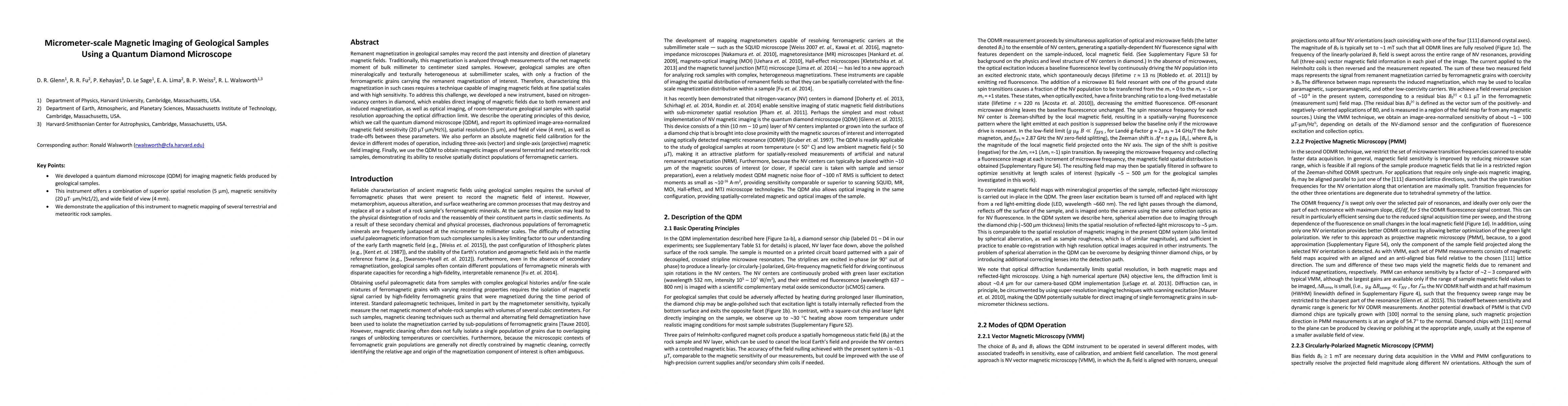 This paper introduces a quantum diamond microscope (QDM) based on nitrogen-vacancy centers in diamond for micrometer-scale magnetic imaging of geological samples, achieving high sensitivity and resolution. The QDM enables detailed visualization of remanent and induced magnetization in heterogeneous geological samples.