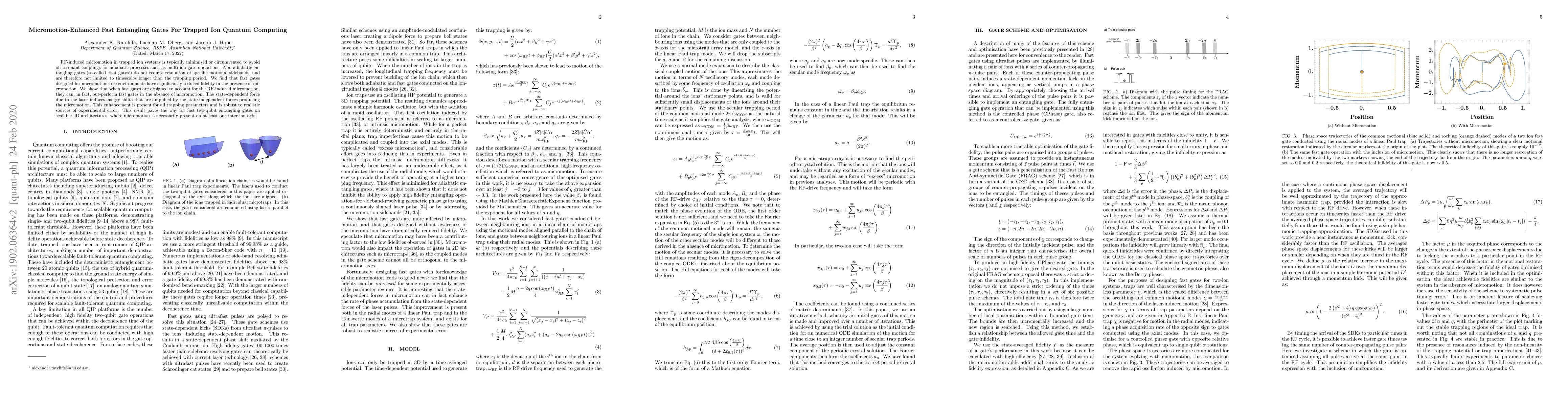 This paper demonstrates that RF-induced micromotion in trapped ion systems can enhance the performance of fast entangling gates, improving their fidelity when properly accounted for, thus enabling efficient quantum computing in scalable 2D architectures.