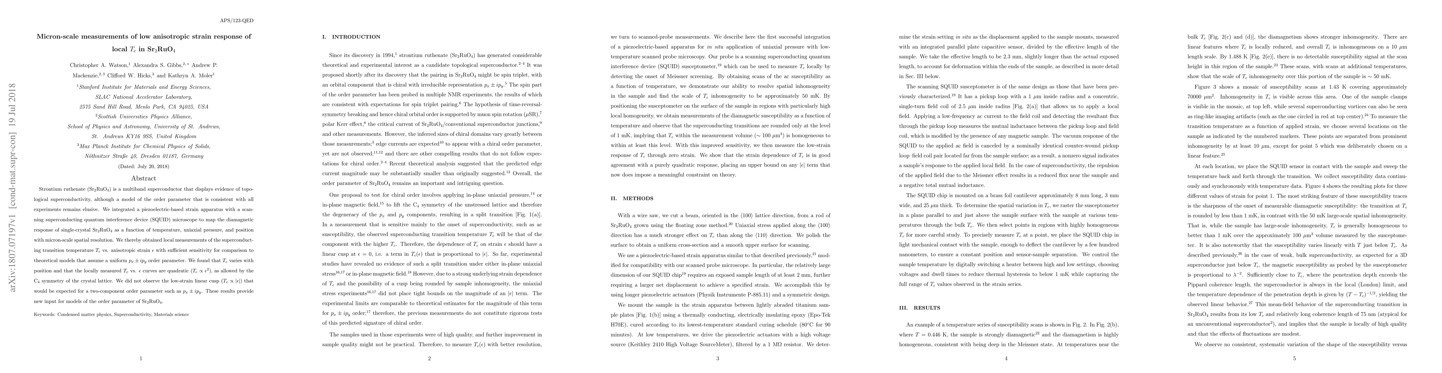 This study uses a piezoelectric-based strain apparatus with a SQUID microscope to measure the local superconducting transition temperature $T_c$ in Sr$_2$RuO$_4$ under anisotropic strain. The findings show a quadratic $T_c$ vs. strain relationship, contradicting the expected linear cusp for a $p_x\pm ip_y$ order parameter, thus providing new insights into the material's order parameter model.
