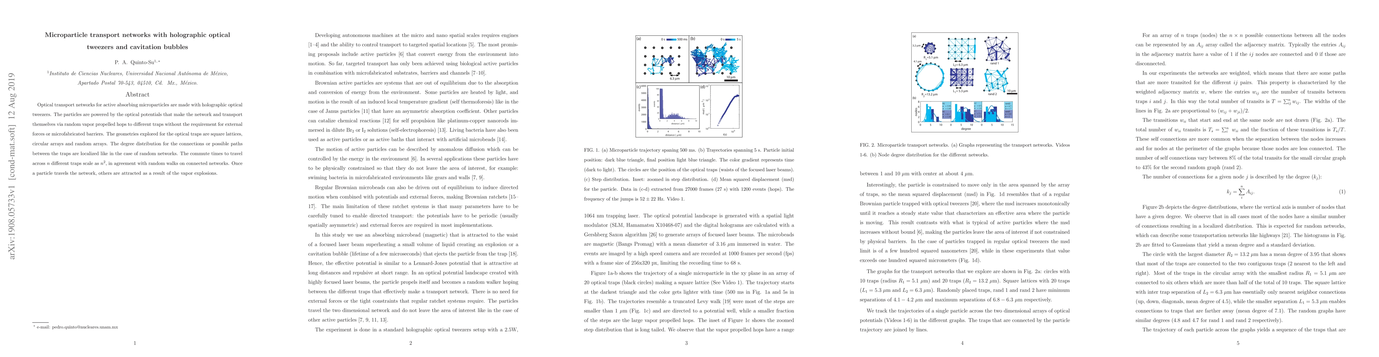 The paper presents a novel method for creating and analyzing microparticle transport networks using holographic optical tweezers, demonstrating self-propelled motion and interaction-enhanced transport.