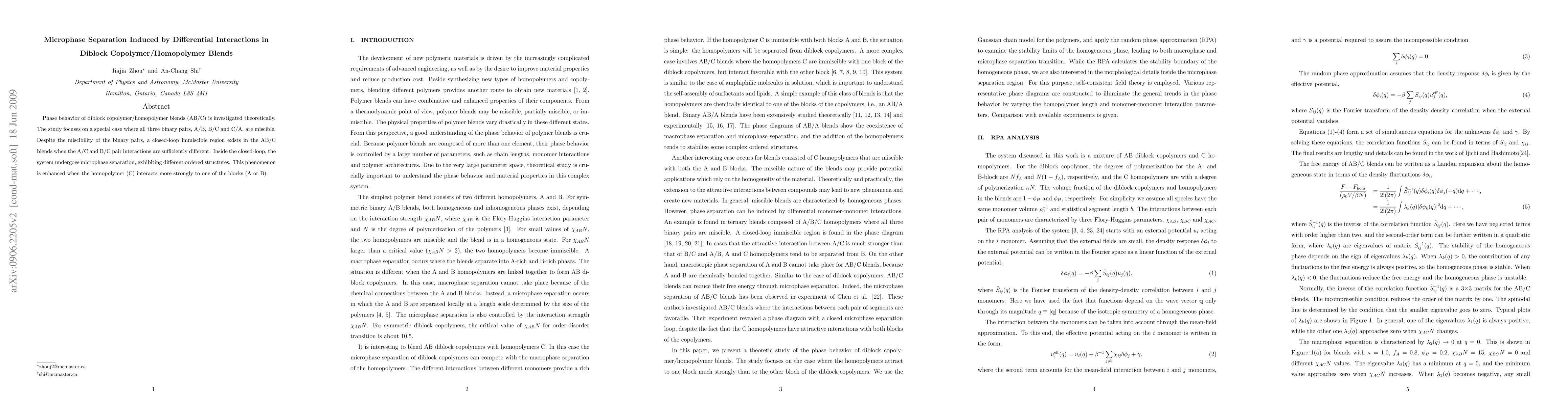 This paper investigates the phase behavior of diblock copolymer/homopolymer blends where all binary pairs are miscible but a closed-loop immiscible region forms due to differential interactions. The system exhibits microphase separation and ordered structures within this region, particularly enhanced when the homopolymer strongly interacts with one block.