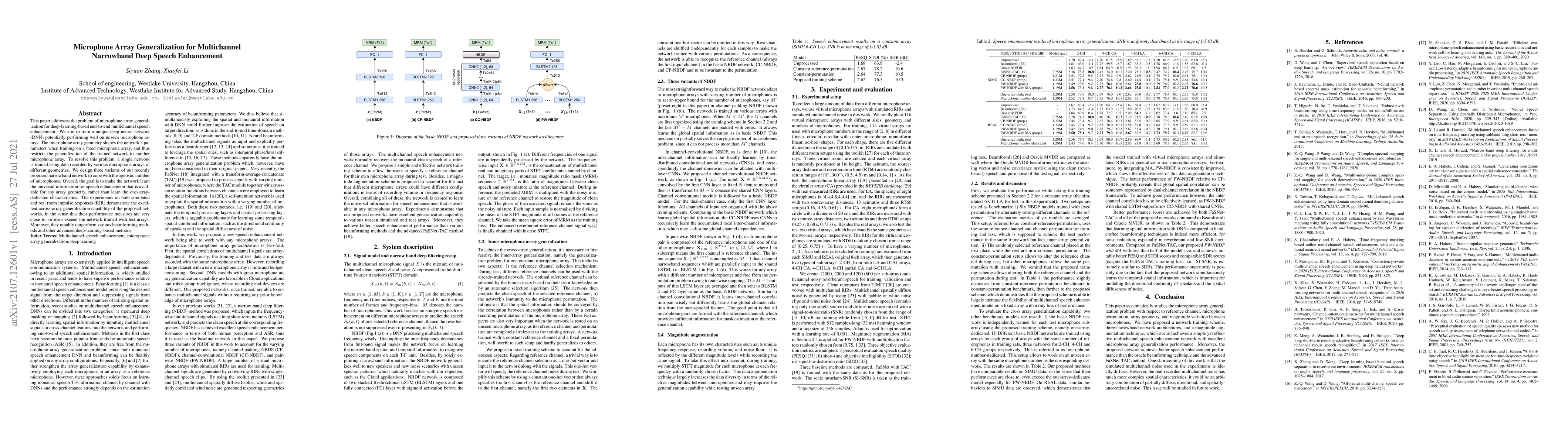 This paper proposes a deep neural network trained on data from various microphone arrays to enhance speech across different geometries, achieving superior generalization and performance compared to traditional beamforming methods. The experiments show the network's ability to maintain high performance on unseen arrays, outperforming other deep-learning and beamforming techniques.