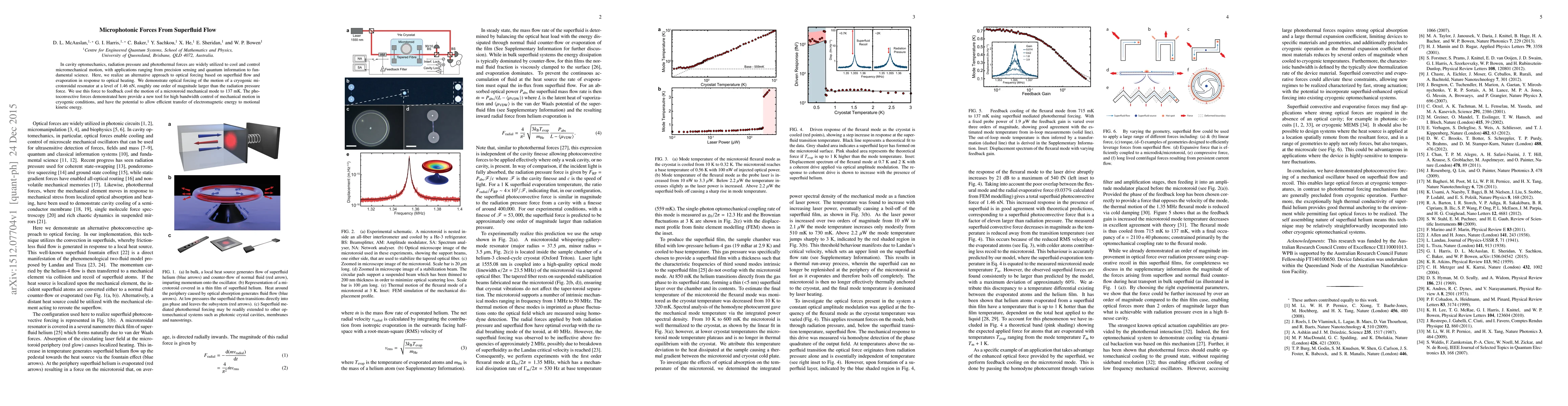 In cavity optomechanics, radiation pressure and photothermal forces are widely utilized to cool and control micromechanical motion, with applications ranging from precision sensing and quantum information to fundamental science. Here, we realize an alternative approach to optical forcing based on superfluid flow and evaporation in response to optical heating. We demonstrate optical forcing of the motion of a cryogenic microtoroidal resonator at a level of 1.46 nN, roughly one order of magnitude larger than the radiation pressure force. We use this force to feedback cool the motion of a microtoroid mechanical mode to 137 mK. The photoconvective forces demonstrated here provide a new tool for high bandwidth control of mechanical motion in cryogenic conditions, and have the potential to allow efficient transfer of electromagnetic energy to motional kinetic energy.
